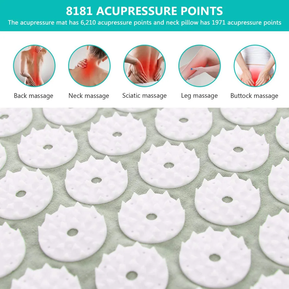 Что такое акупрессуровый Мат?Состоит из тонкого коврика, покрытого шипами из АБС-пластика. Он вдохновлен древними индийскими традициями исцеления, которые, как считается, были вокруг в течение тысяч лет. Тысячи шипов, которые были стратегически размещены на коврике и подушке, безвредны для кожи и обеспечат вашему телу целебные преимущества.Как это работает?Акупрессуровый коврик является идеальным помощником для самостоятельного лечения. Он работает таким же образом, как акупунктура, обеспечивая релиз эндорфинов вашего тела, которые обладают способностью производить анальгезию и ощущение самочувствия. Многие люди имеют различные реакции на это, которые могут включать в себя: счастье, ясный ум, больше энергии и расслабление. При регулярном использовании в течение достаточно длительного периода времени набор для акупрессуры может:-повысить уровень энергии-улучшить кровообращение-уменьшить стресс-облегчить боль в шее и спине-уменьшить кровяное давление-облегчить головные боли-улучшить сон.Как использовать?Поместите коврик на землю с шипами, указывающими вверх. Ложитесь на коврик. Коврик позволит Вам ориентироваться на изогнутые области, такие как шея, поясница и даже ноги. Предпочтительно делать это ежедневно в течение 10-30 минут одновременно или при желании. Для начинающих может быть лучше начать в течение более короткого периода времени и/или носить рубашку или поместить тонкую ткань между шипами и вашей кожей.Характеристики:Название: массажный коврикМатериал: композитный материалЦвет: как на изображенииРазмер подушки: 33*23*9 смРазмер коврика: 68*42*2 смПосылка включает в себя:Подушка/массажная подушка комплект из двух предметов (вы можете выбрать желаемый, спасибо)