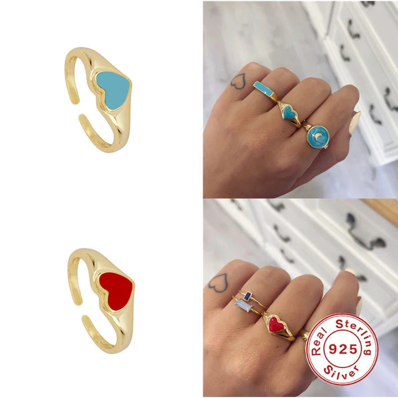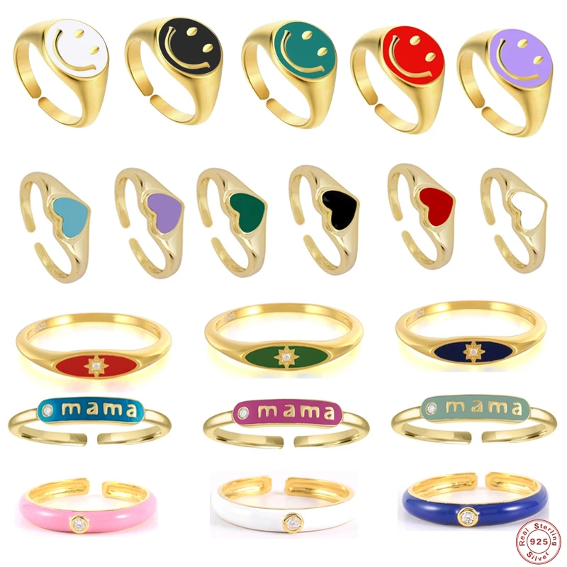 S925 кольца из стерлингового серебра капель масла Регулируемый Открытое кольцо для Для женщин леди улыбающееся лицо любящее сердце украшения для свадьбы подарок