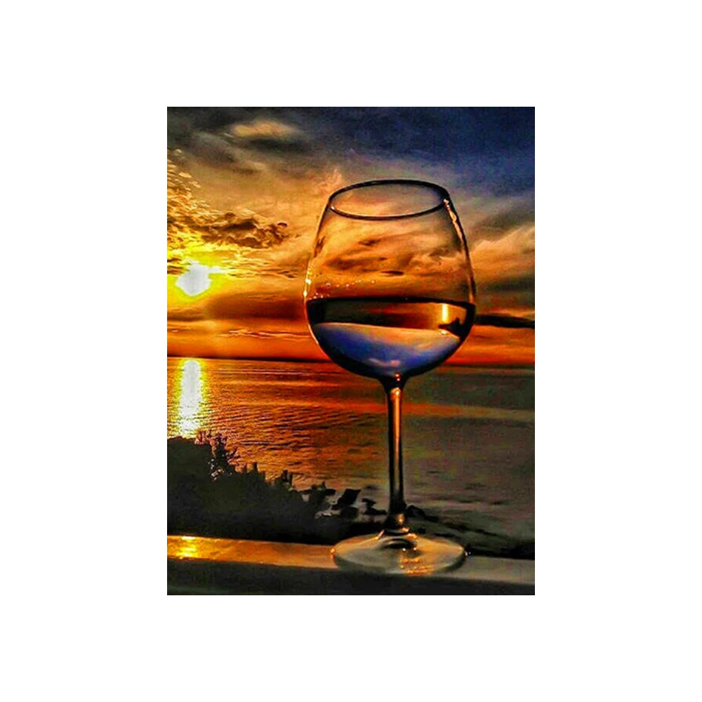 Алмазная живопись бокал вина 5D, сделай сам, закат, пейзаж, алмазна...