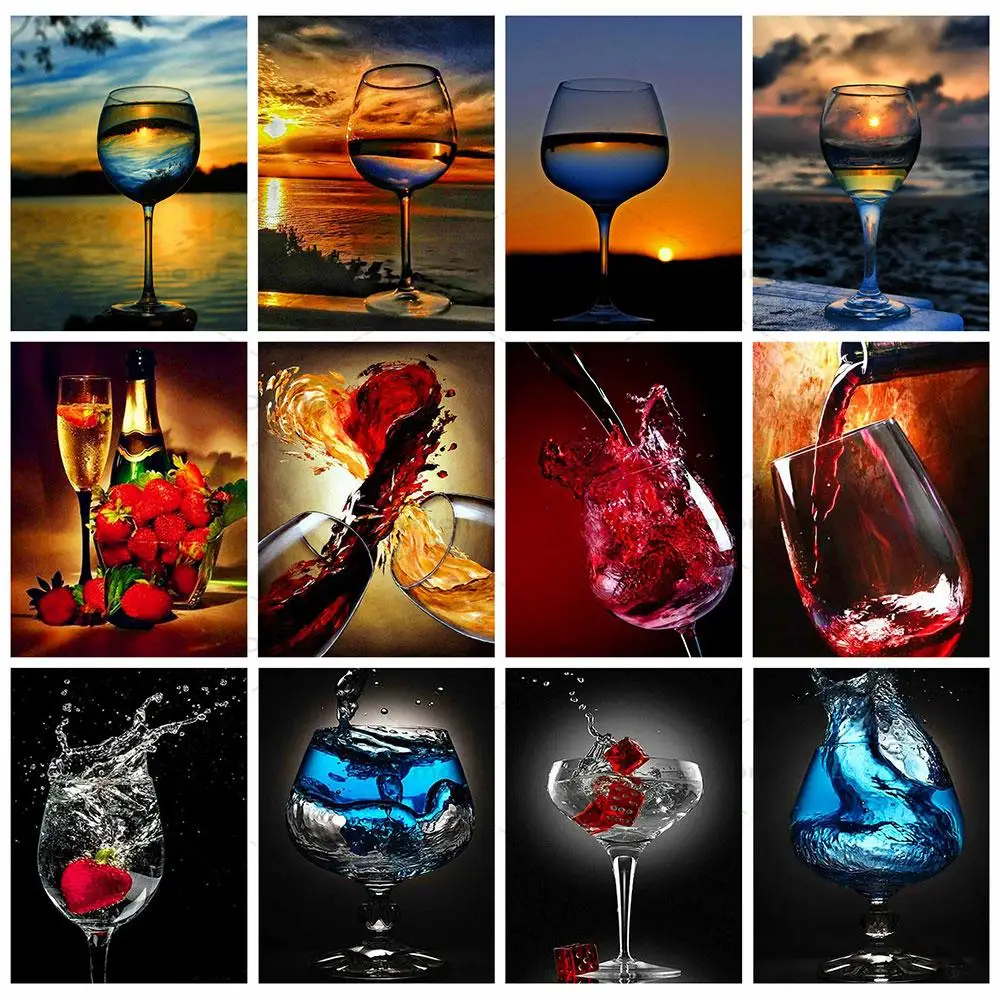 5D алмазная живопись бокал для вина полный квадратныйкруглый DIY Ал...
