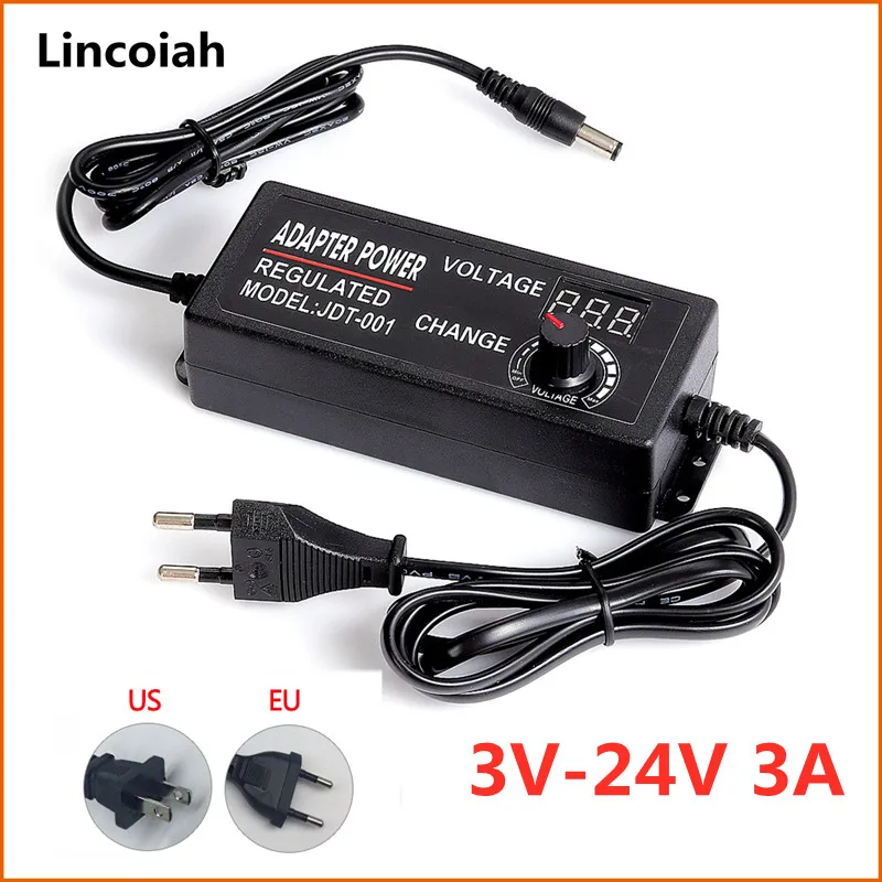 72 Вт 60 Вт 3-24V Регулируемый адаптер с Дисплей Экран из Напряжение DC 5.5x2.12.5 мм Мощность питания ЕС Штекер 5,5 мм x 2,1 мм2,5 мм