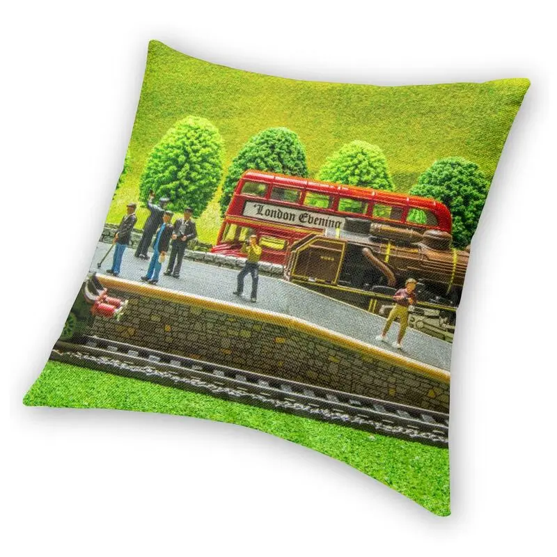 Наволочка в британском винтажном стиле с дневным поездом, 40x40, домашний декор, двухсторонний чехол с красным лондонским автобусом для дивана