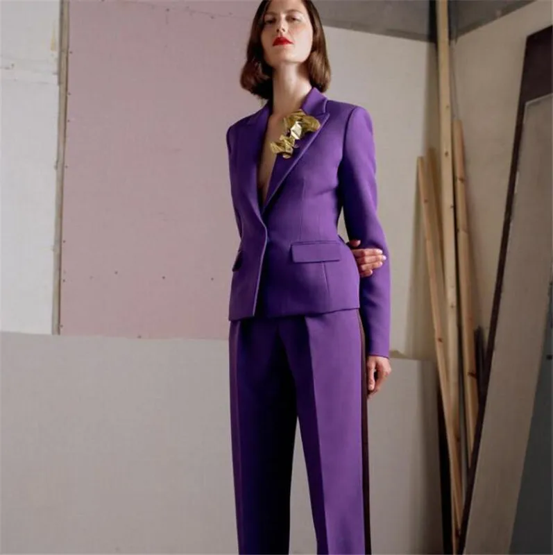 Модные фиолетовые женские костюмы, блейзер + брюки для работы, костюм-брюки для свадьбы, вечеринки, бизнеса, изготовление на заказ