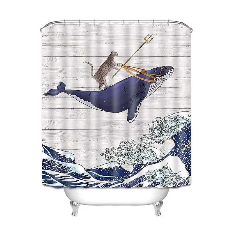 Забавная занавеска для душа в виде кошки, морская Восточная тканева...