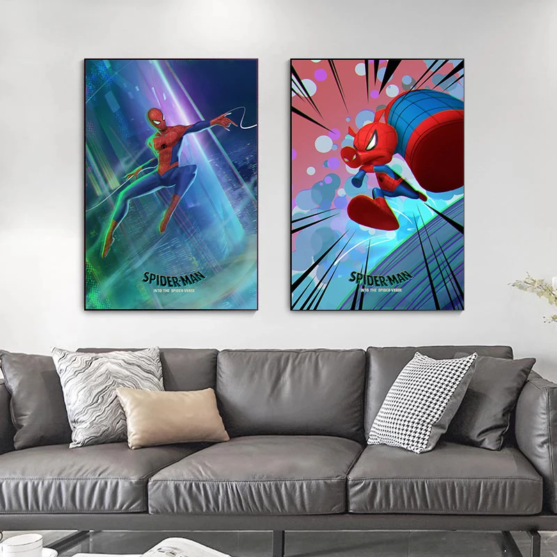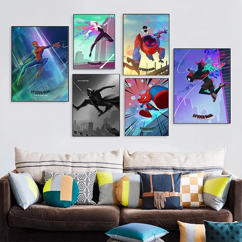 Картина на холсте с мультяшным роботом, рисунки, искусство на стене...