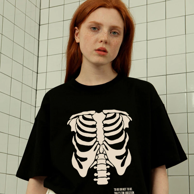 Забавная футболка в стиле хип-хоп с графическим принтом скелета и костей, МужскаяЖенская винтажная уличная одежда в стиле панк унисекс, Мужская одежда, футболки, топы