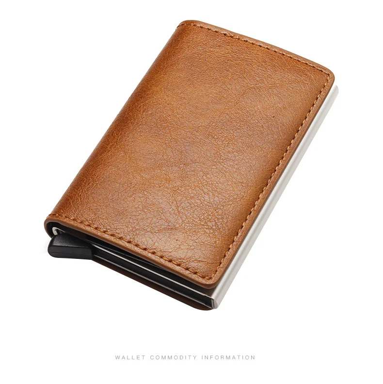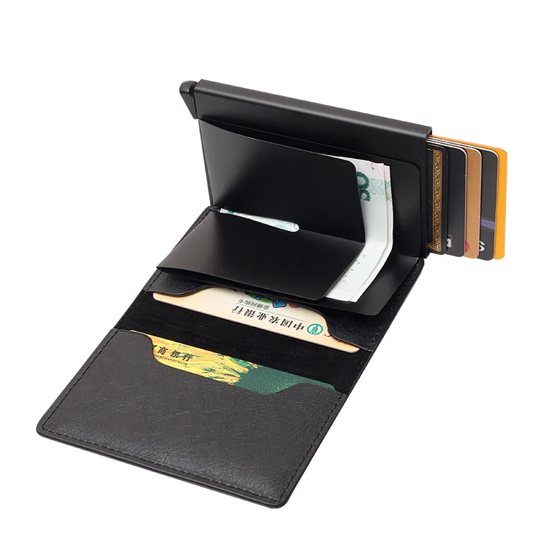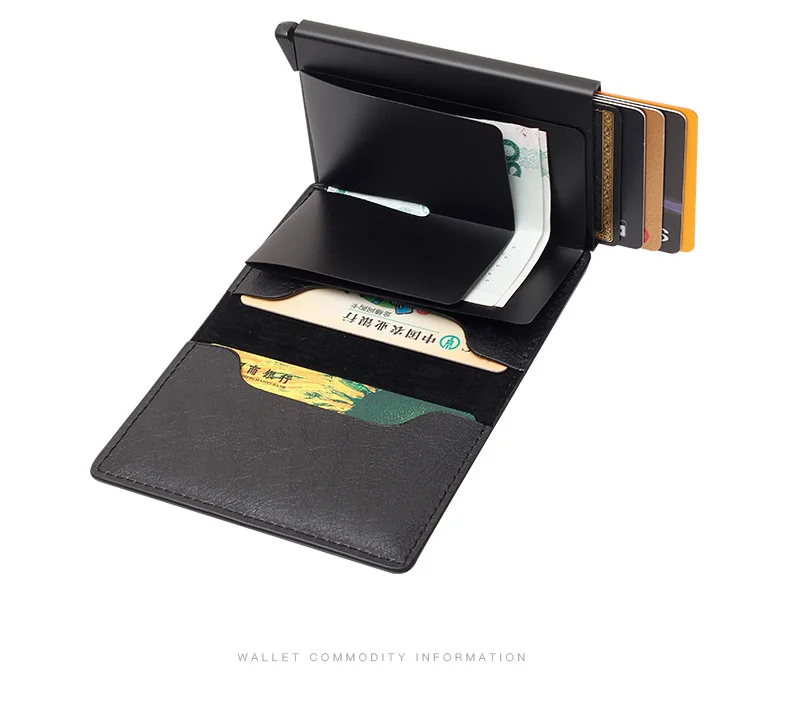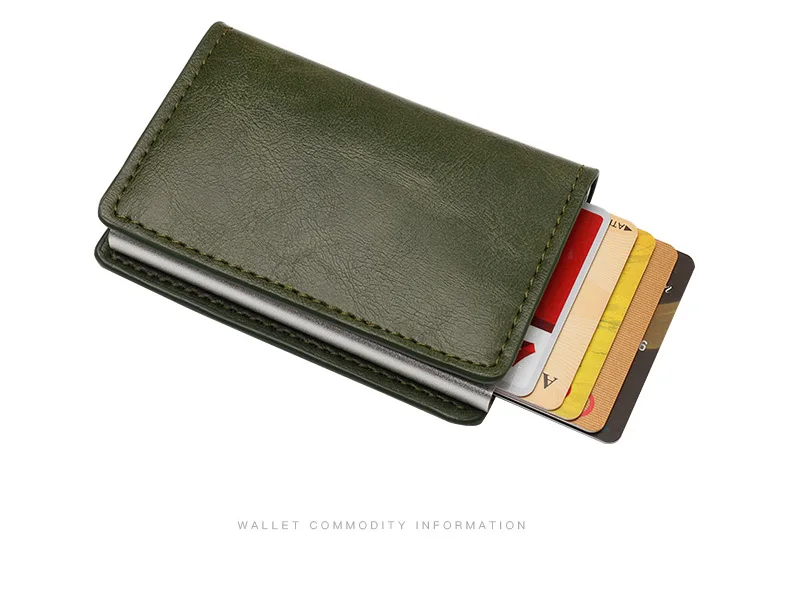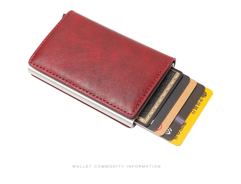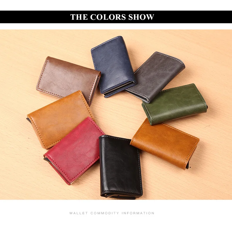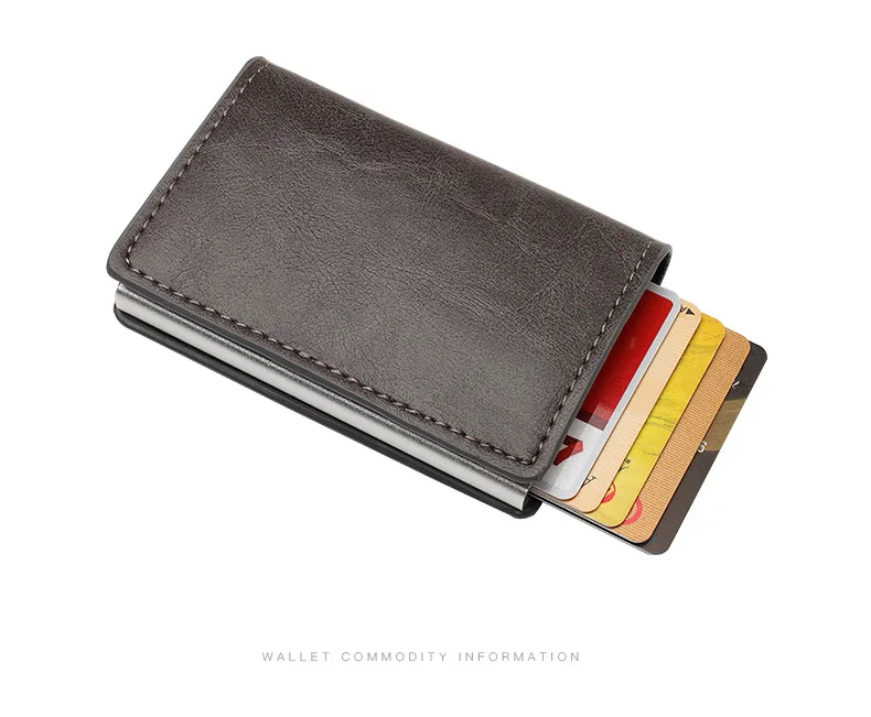 Новинка 2021, кошелек с радиочастотной идентификацией для мужчин и женщин, держатель для кредитных карт, алюминиевый металлический держатель для кредитных карт из искусственной кожи, металлический выдвижной тонкий мини-кошелек для мужчин