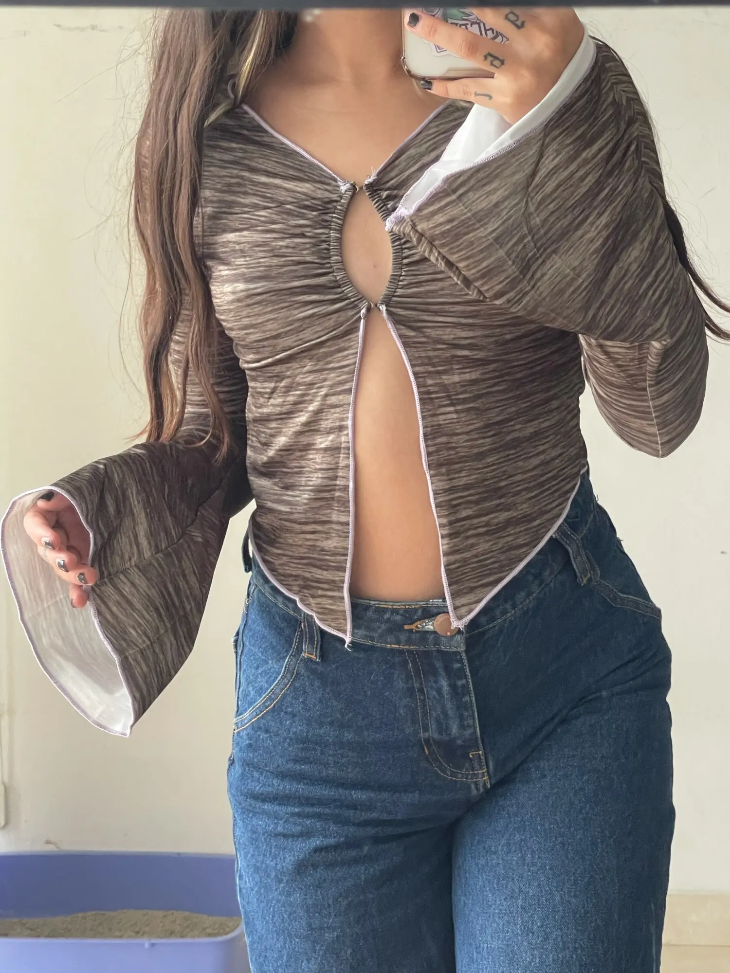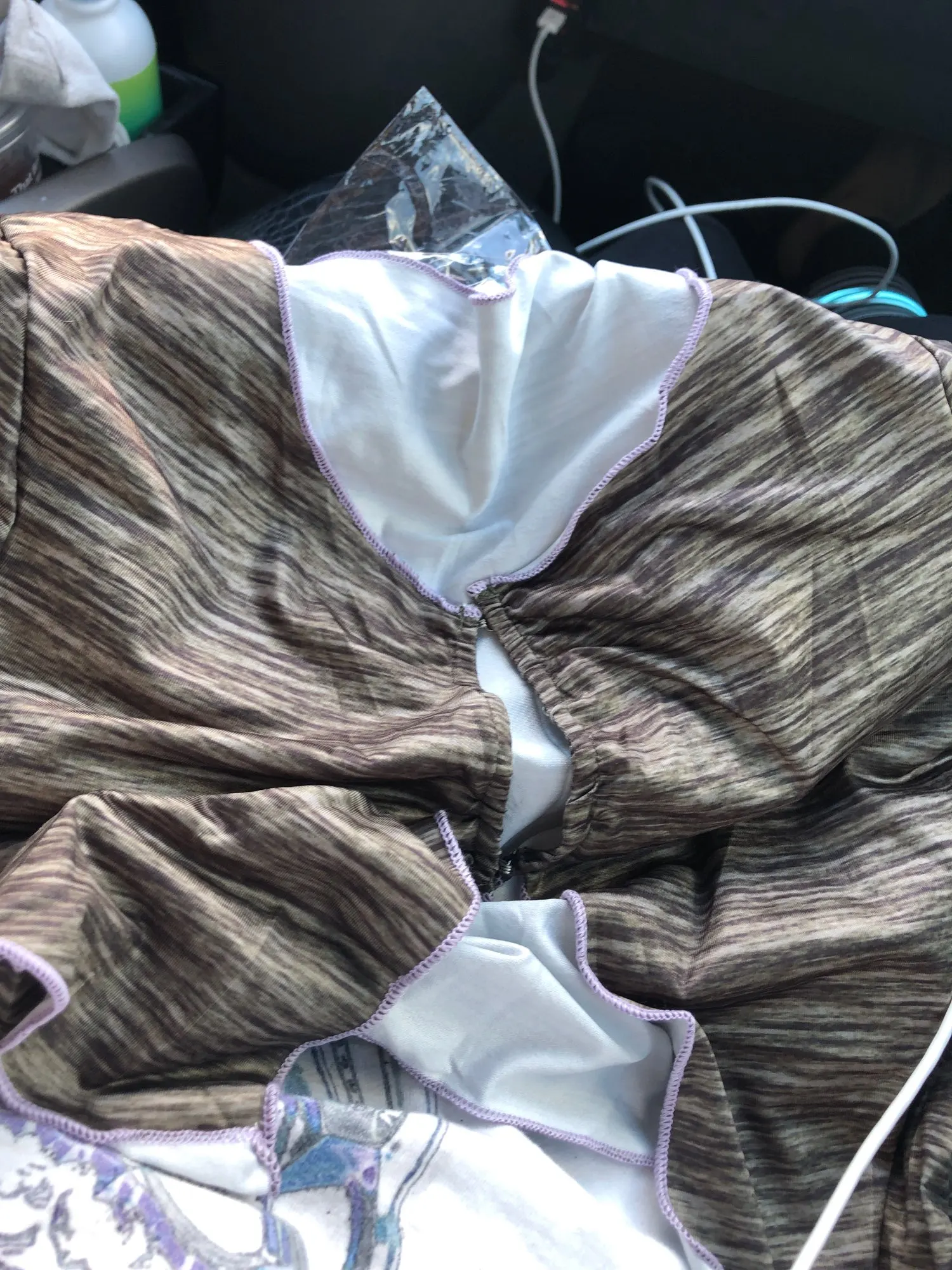 Это необычный материал и не выглядит правильно, особенно если у вас есть грудь, а не плоская. Только две кнопки, чтобы вы могли видеть, если вы носите бюстгальтер. Рукава Необычные.