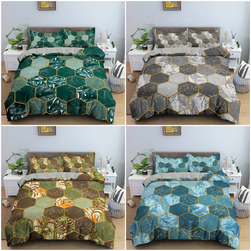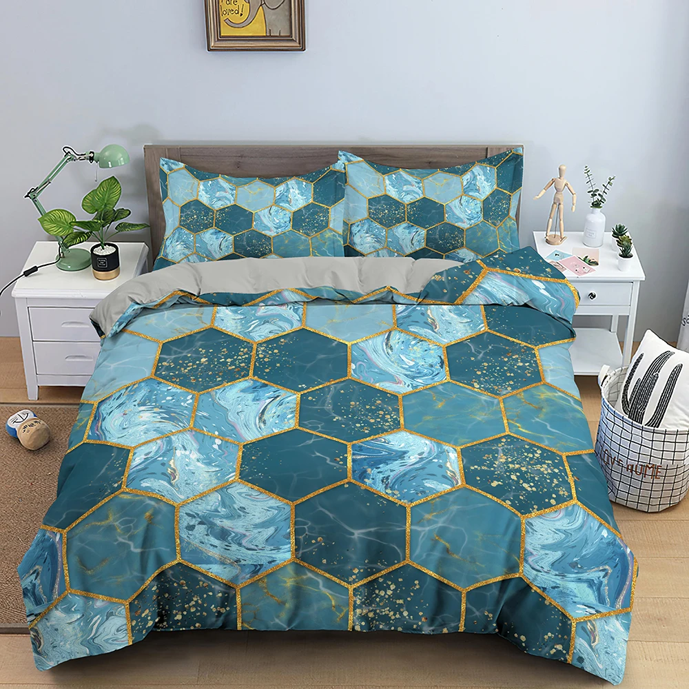 Комплект постельного белья шестиугольник с геометрическим принтом, пододеяльник с наволочкой, удобный пододеяльник