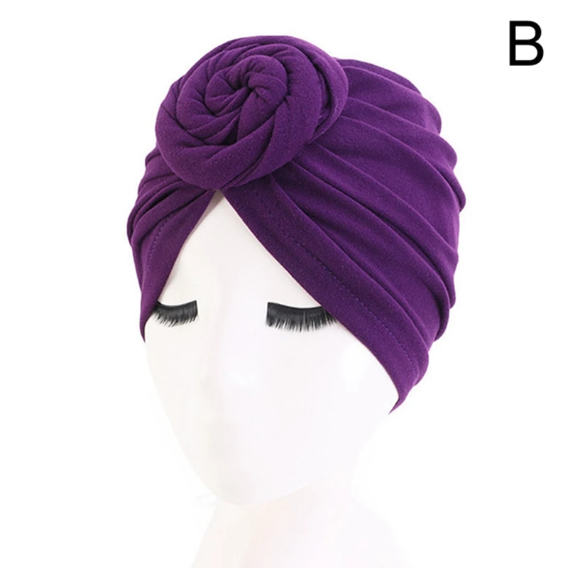 2021 Модные женские тюрбан капот soild Цвет Топ узел внутренний шапочки под хиджаб мусульманский Твист повязка для волос для женщин Головные обручи Индия шляпа