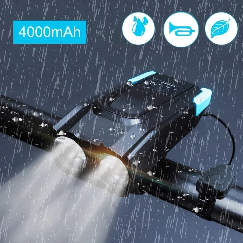Индукционный велосипедный передний фонарь с гудком, 20000 люмен, 4000 мАч, зарядка через USB, умный велосипедный светодиодный фонарь, велосипедный фонарь, велосипесветильник онарь