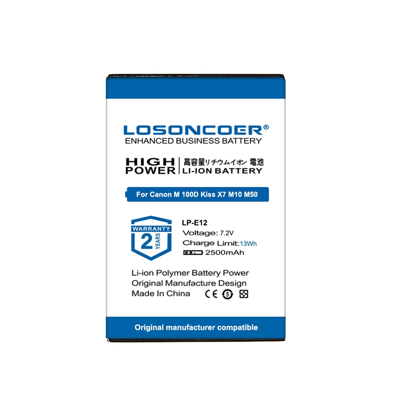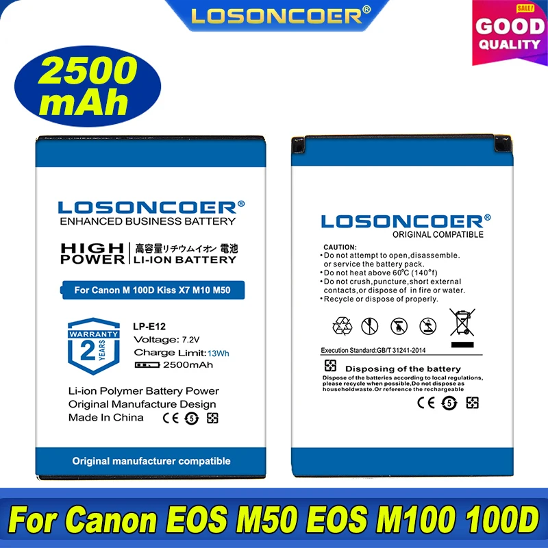 100% Оригинальный LOSONCOER Батарея 2500 мАч, LP-E12 для Canon SX70 HS Rebel SL1 EOS-M EOS M2 EOS M10 EOS M50 EOS M100 EOS M200