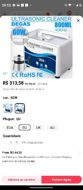 Цифровой ультразвуковой очиститель 800 мл 60 Вт Degas нержавеющая с...