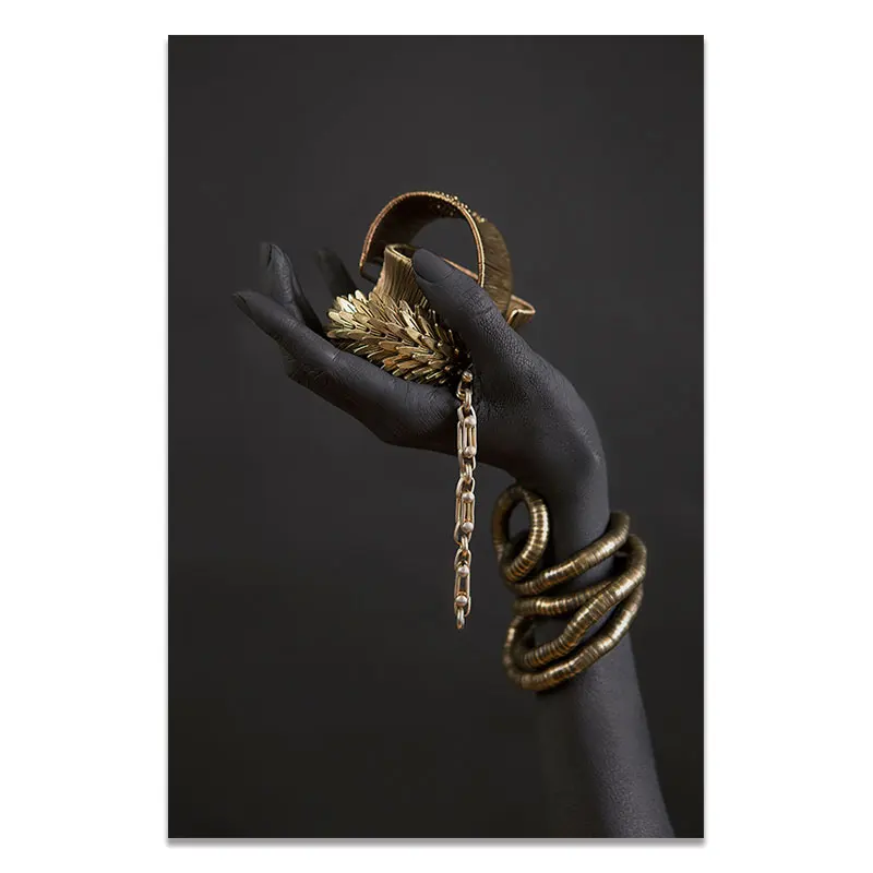 Черная и Золотая рука с золотым браслетом, холст, живопись, африканские художественные плакаты, принты, настенные картины для декора гостиной