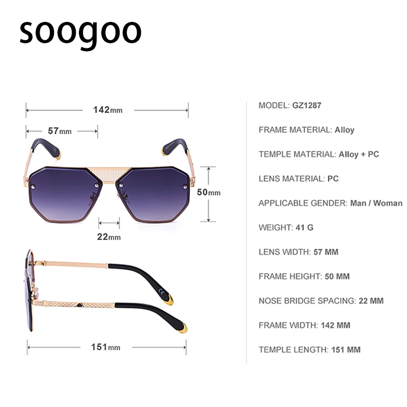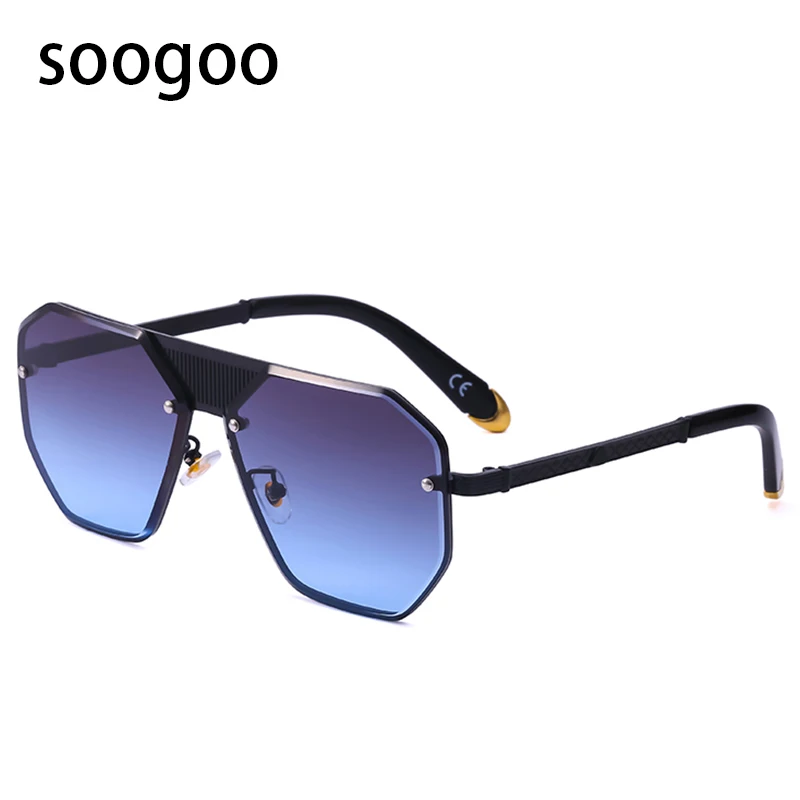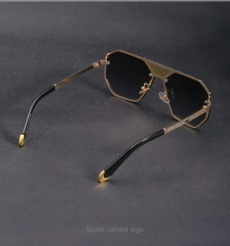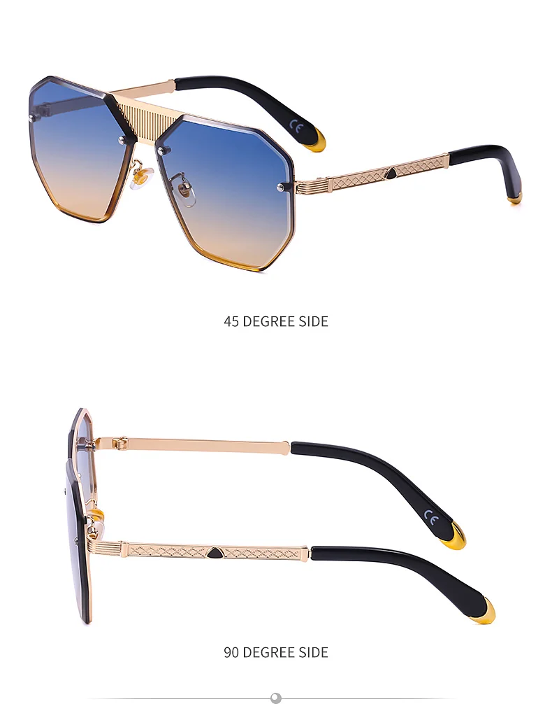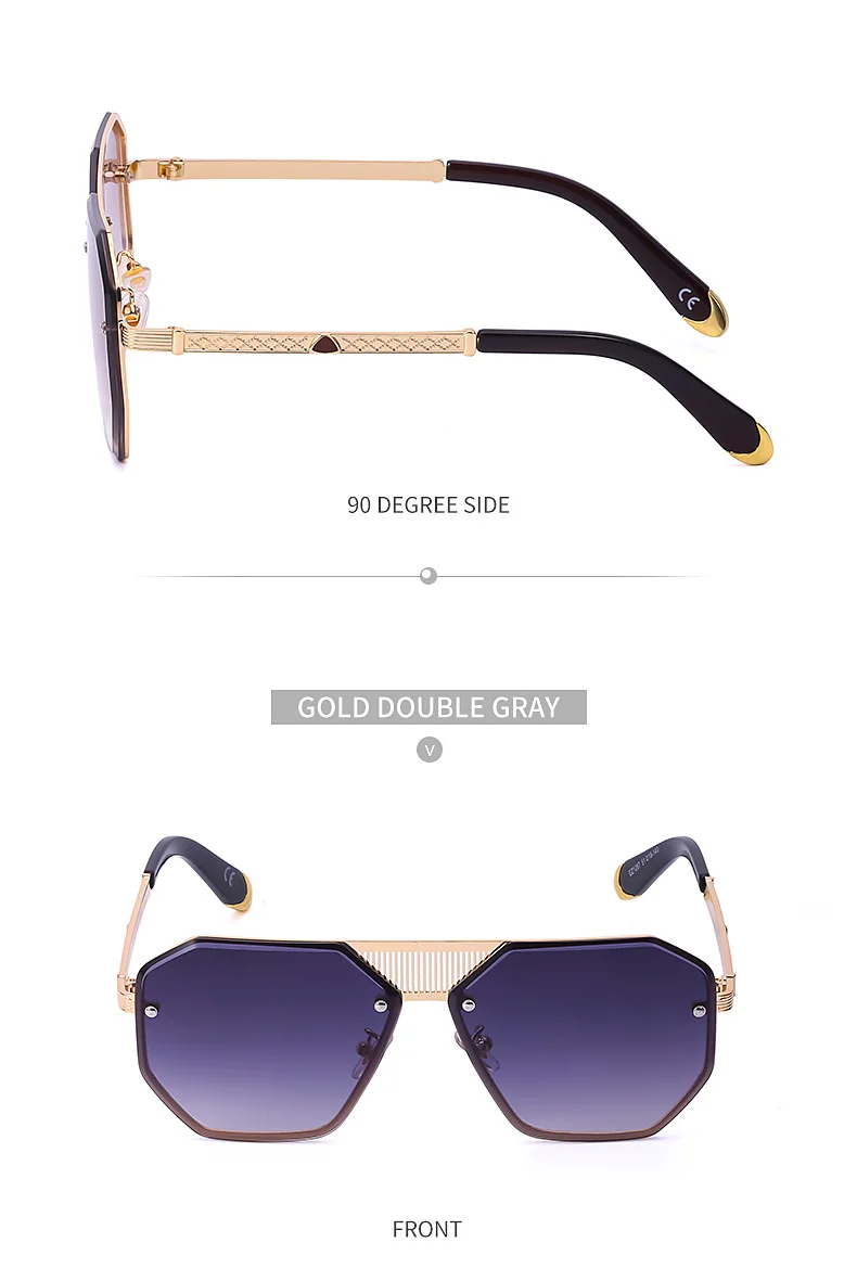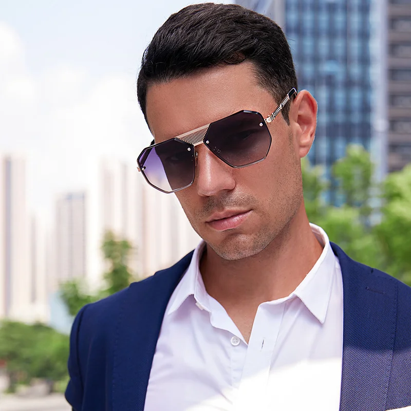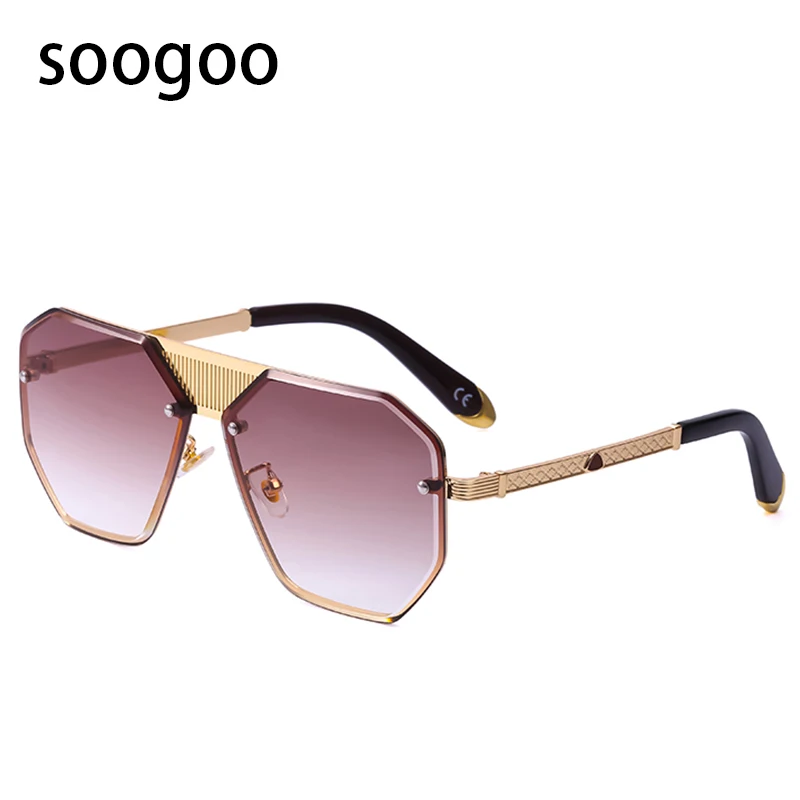 Винтажные элегантные солнцезащитные очки без оправы с полигоном, мужские роскошные брендовые дизайнерские солнцезащитные очки, женские модные очки с металлической большой оправой, УФ 400