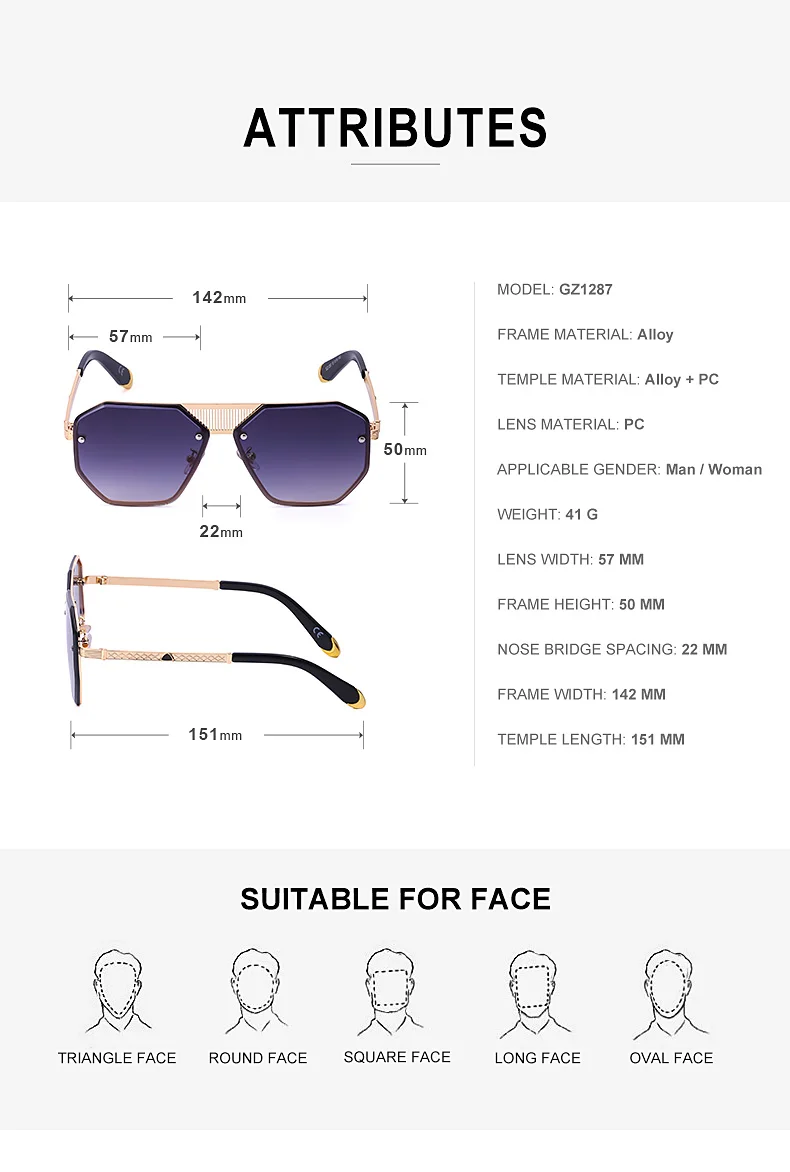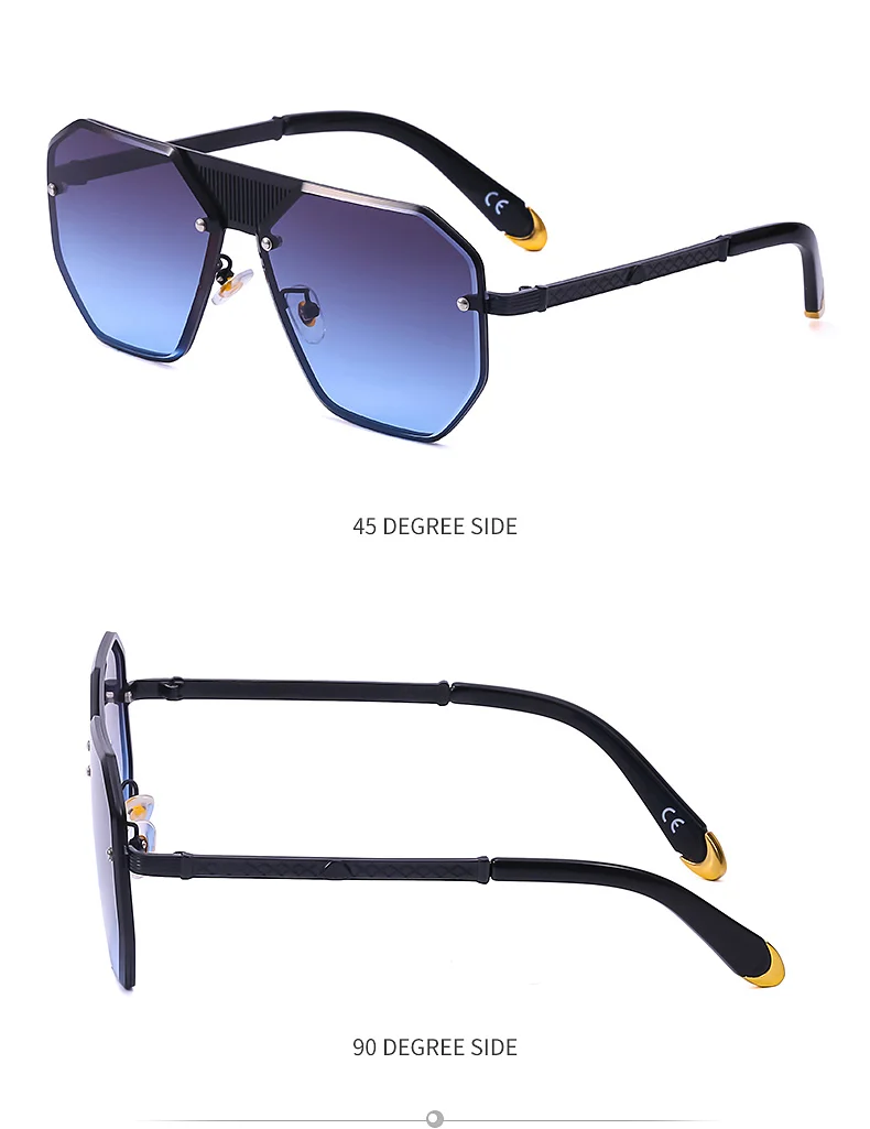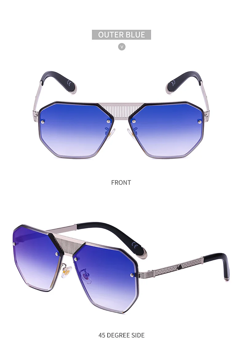 Очки солнцезащитные многогранные без оправы для мужчин и женщин, винтажные элегантные брендовые дизайнерские модные солнечные очки в металлической большой оправе, с защитой от ультрафиолета UV 400