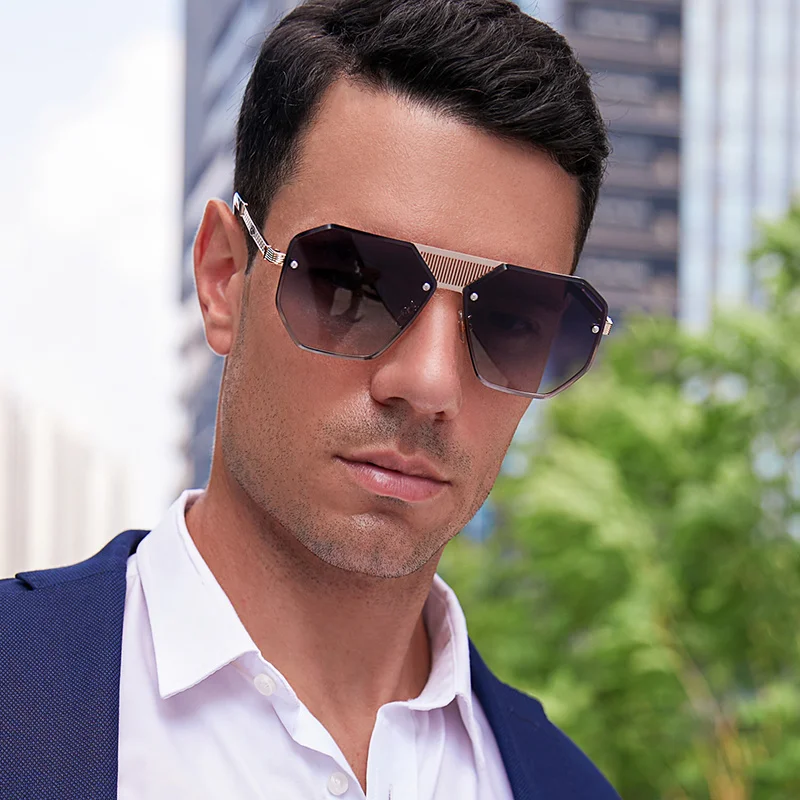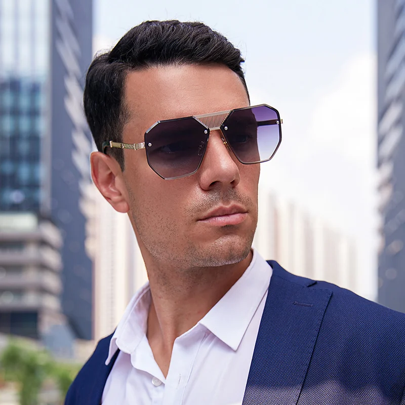 2021 Модные солнцезащитные очки без оправы для мужчин винтажные ква...