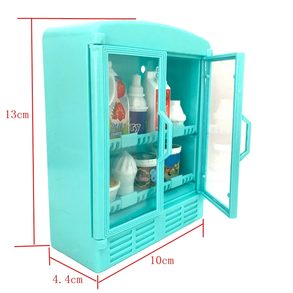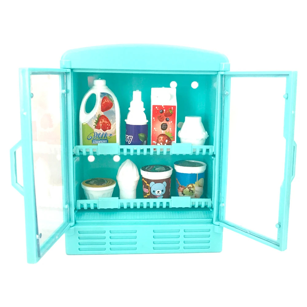 Кукольный холодильник NK1, модная мебель, кухонный холодильник, прозрачная открытая дверь с аксессуарами для куклы Барби, игровая игрушка