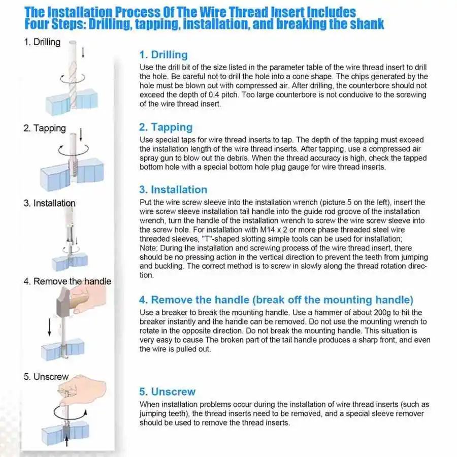 Резьбовой инструмент для ремонта резьбы из нержавеющей стали, 20 шт., M14x1.25x1D1.5D2D2.5D3D, резьбовые вставки, винтовая резьба, комплект для восстановления винтовой втулки