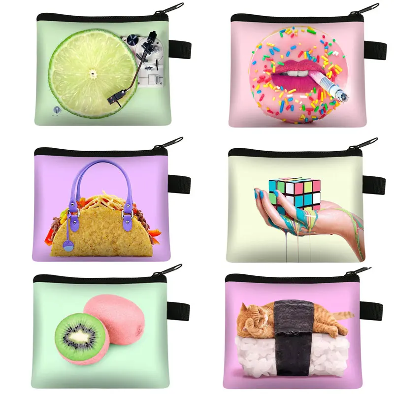 Интересный цветной кошелек с забавным принтом, Женская милая сумка для монет с принтом губ, леденец, мечта, мини-кошелек с ключами для карт, usb-кабель, сумки для гарнитур