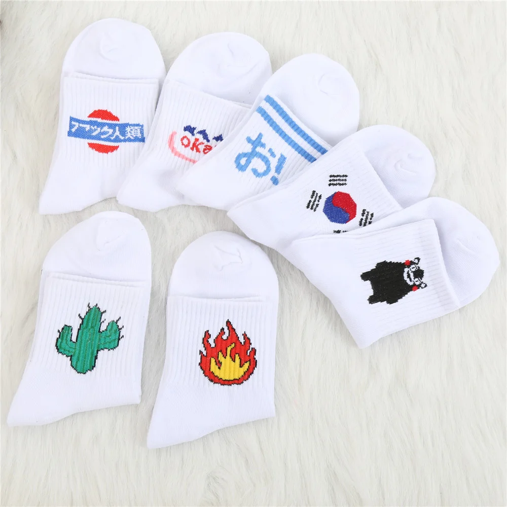 1 пара корейских женских Хлопковых Носков Harajuku милые носки с пламенем кактусовый пистолет Акула инопланетянин кавайные носки Высокое качество оптовая продажа