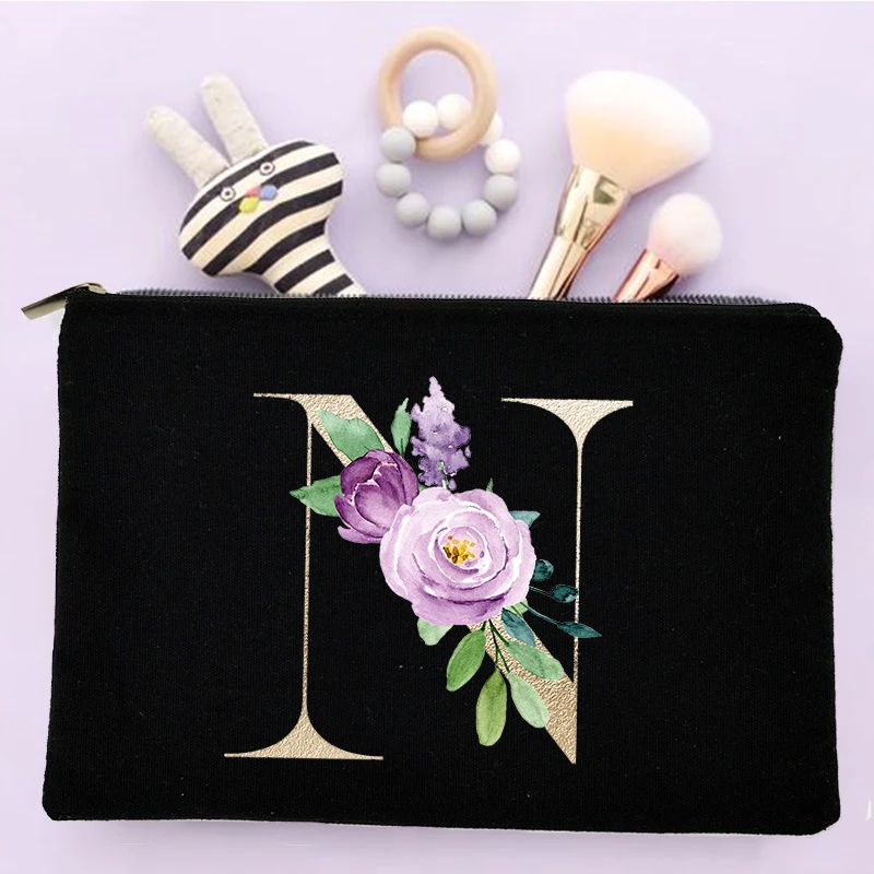 Косметичка с 26 буквами и цветочным принтом для женщин, чехол для к...