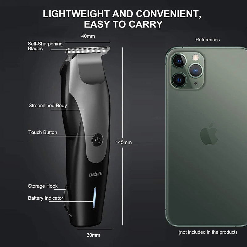 Т-образная режущая головка ● ENCHEN предназначена для обрезки масляная голова градиентного стиля волос, поэтому она принимает все-стальной Профессиональный Т-нож, ультра-тонкие и плотные зубы, ультра-короткий шаг, R-shaped obtuse угол, с 1-3 мм концевой расческой, точный контроль длины стрижки. Быстро организовать лысый ● лезвие режущая головка ультра-тонкий корпус менее 0,3 мм, а толщина составляет половину обычного машинок для стрижки волос. Экстра-широкая конструкция режущей головки поддерживает быструю отделку лысой головки. 10 Вт высокой мощности ● Колибри обеспечивает 10 Вт профессиональной мощности, скорость двигателя составляет 7100 об/мин, машинка для стрижки волос очень гладкая и не будет ловить волосы, любые волосы могут быть легко обработаны. Одна зарядка, 8 месяцев использования ● машинка для стрижки волос имеет встроенный литиевый аккумулятор большой емкости 1500 мАч. Время зарядки составляет 3 часа, он используется для 4 часов, и он используется для 8 месяцев. Низкий уровень шума, менее 50 дБ на работе ● шум пусковой работы составляет менее 50 дБ, а звук триммера для волос простой, низкий и не резкий.