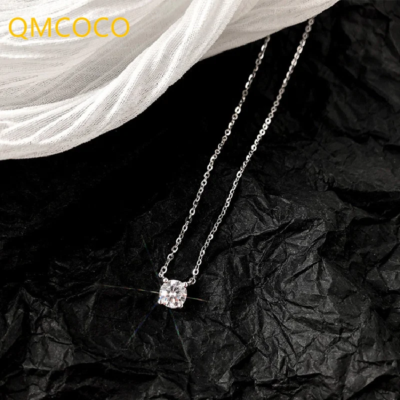 QMCOCO простое ожерелье из серебра 925 пробы с квадратным Цирконом для женщин и девушек подарки на день рождения модные темпераментные Изящные Ювелирные изделия Подарки