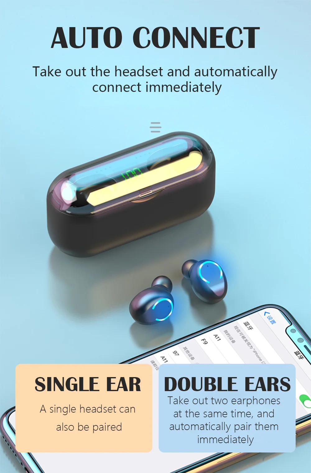 Беспроводные наушники Alatour F9-8, внешний аккумулятор 1500 мАч, Bluetooth 5,0, спортивные наушники со светодиодный цифровым дисплеем, зарядная коробка для гарнитуры