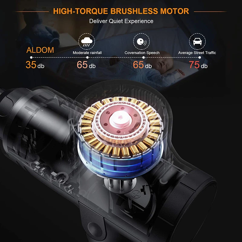 Бесщеточный двигатель с высоким крутящим моментом обеспечивает тихий массаж на 35 дБ
