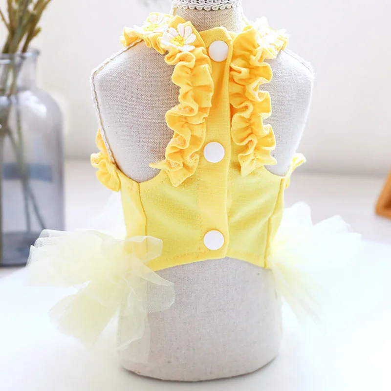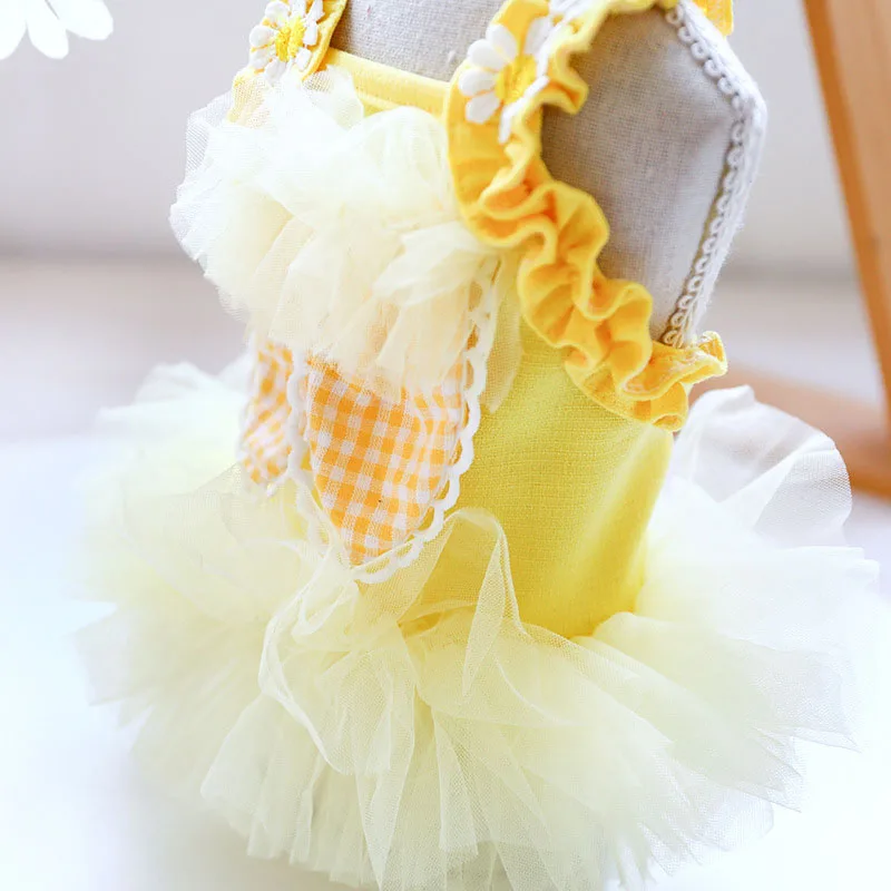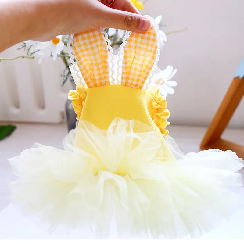 Милая одежда для домашних животных, вечернее праздничное платье с подсолнухами, кружевными лямками через плечо, Тюлевая юбка-пачка с кроличьими ушками, одежда для кошки