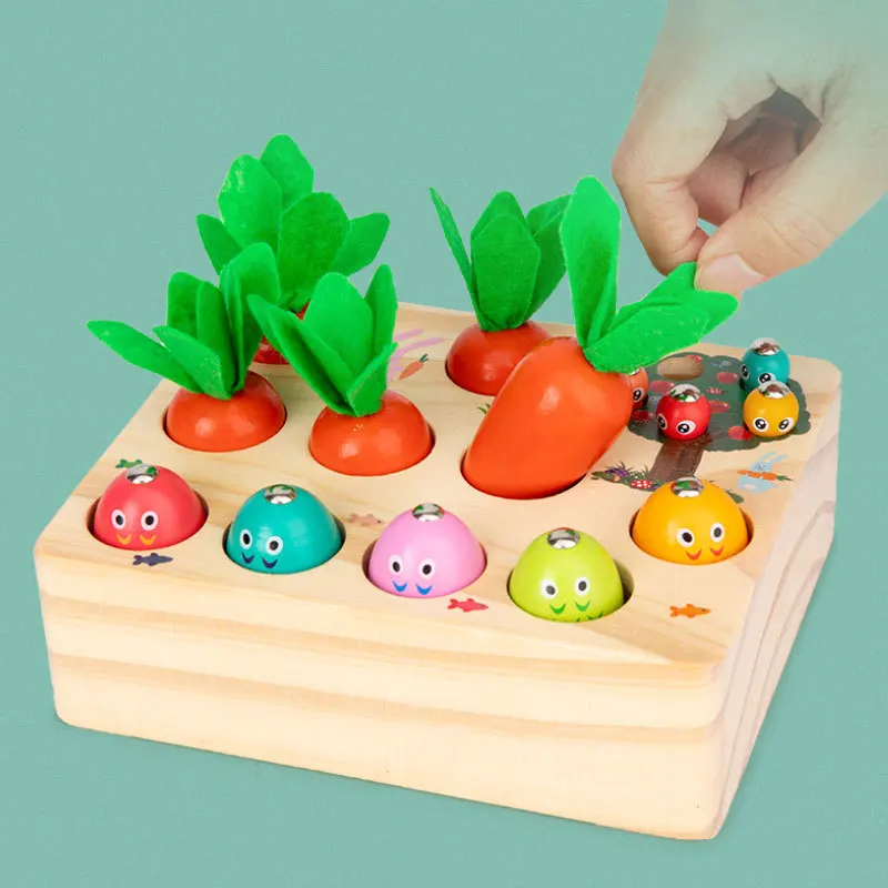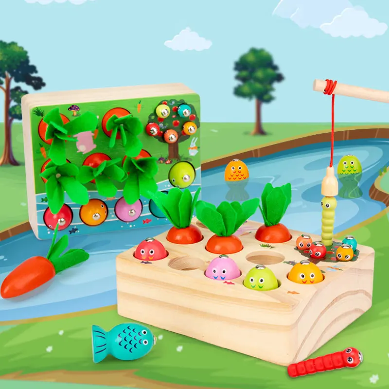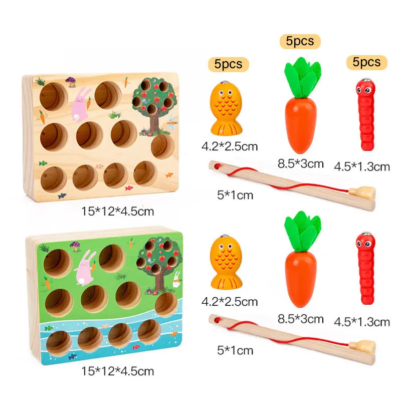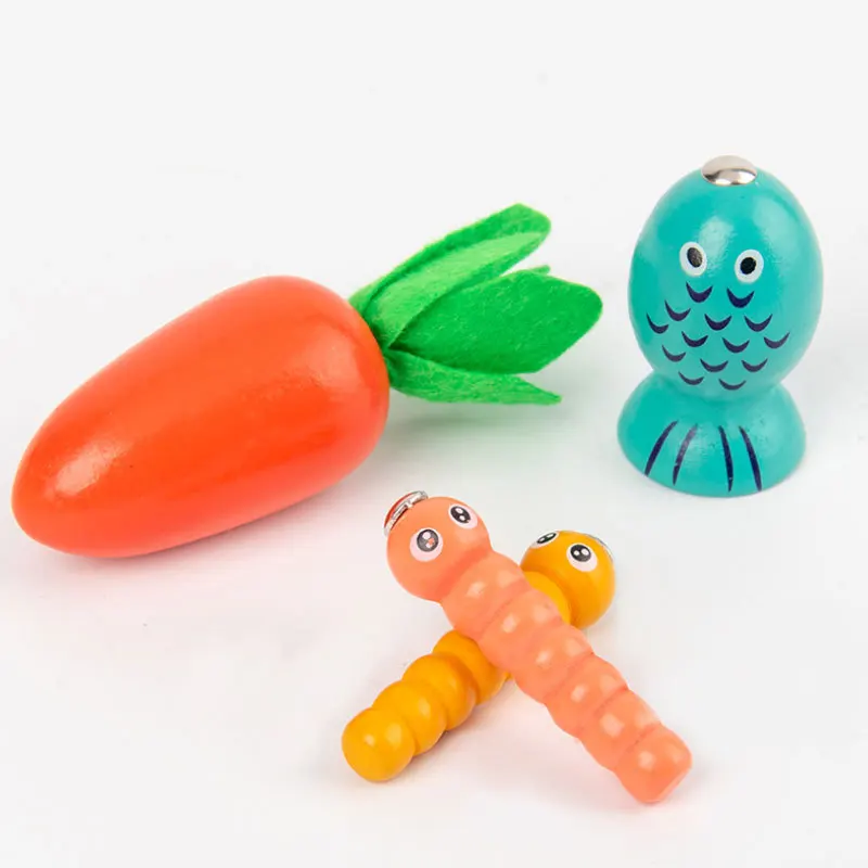 Детские деревянные развивающие игрушки Монтессори, потянув морковку, соответствующие размерам, познание, рыбалка, ловля червя, головоломка для детей