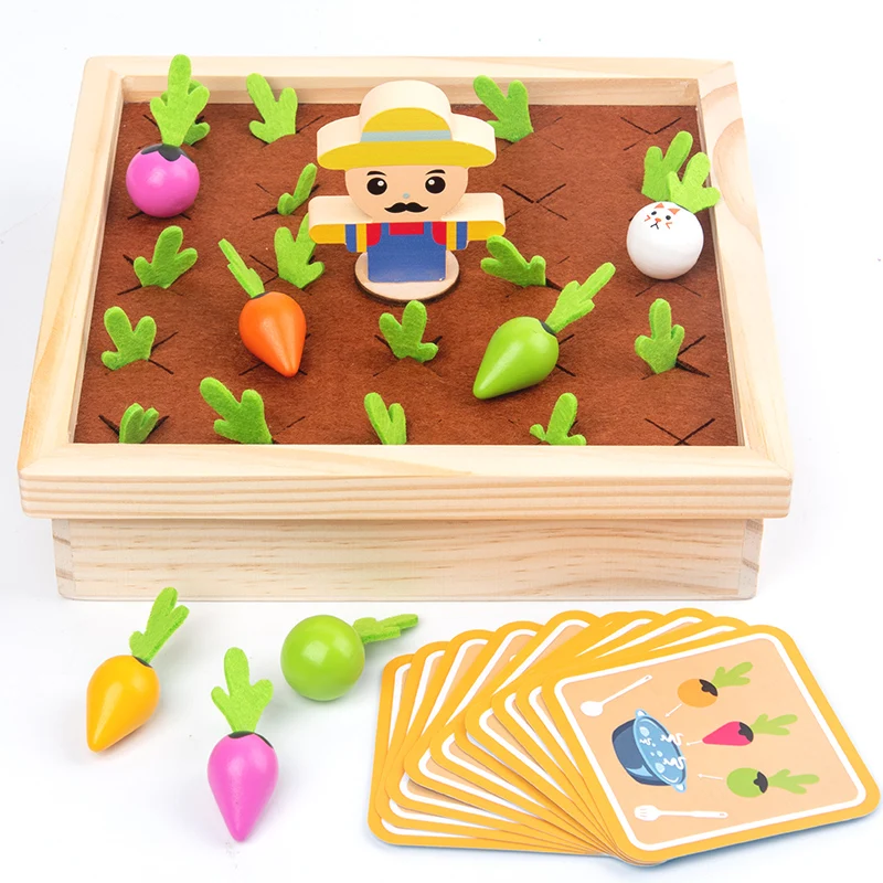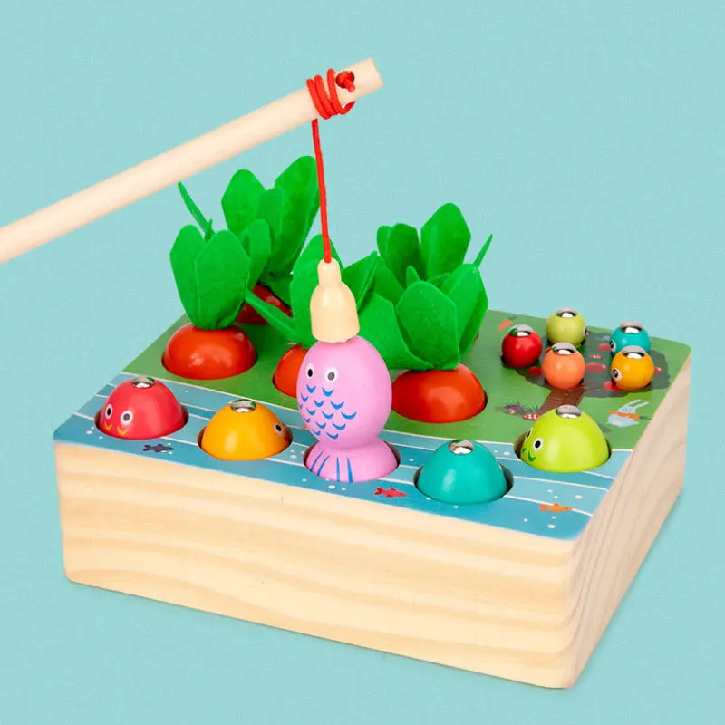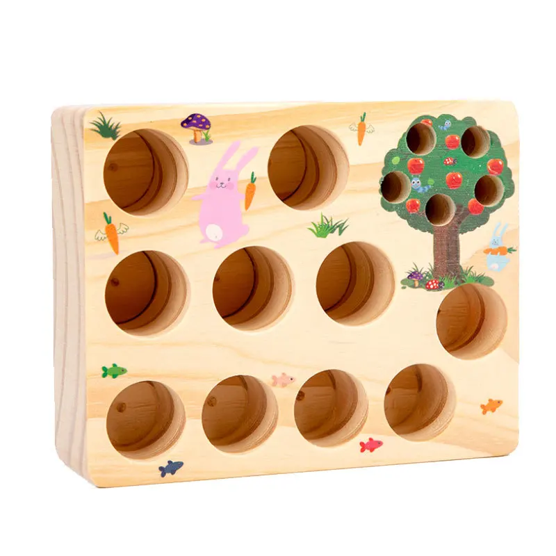 Деревянные развивающие игрушки Монтессори для детей, пазл в форме моркови, познавательная Рыболовная Ловушка