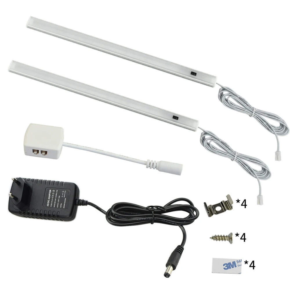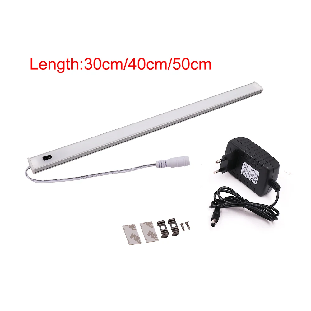 Светодиодный светильник для шкафа, 304050 см, 12 в пост. Тока, ручной переключатель, полоса, кухонный шкаф, датчик движения, ночная лампа, источник питания для ЕС, США, Великобритании