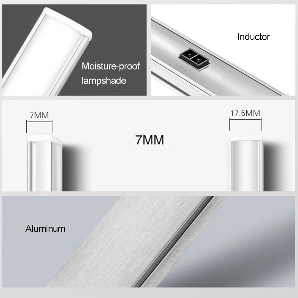 Спецификация: Цвет освещения: белый/теплый белый Тип переключателя: датчик движения руки Материал корпуса: алюминий Длина: 30 см/40 см/50 см Мощность: 5 Вт/6 Вт/7 Вт Напряжение: 12 В постоянного тока Адаптер питания: вилка ЕС/Великобритании Цветовая температура: теплый белый (2800K-3000K)/белый (6000K-6500K) Средний срок службы (ч): более 35000 часов Расстояние обнаружения: 2-5 см CRI:80