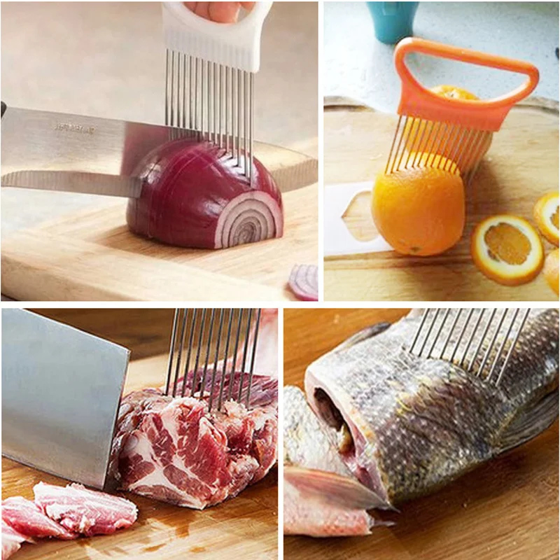 Нержавеющаясталь луковая игла вилка для лука для овощей и фруктов для резки резак для томатов резки безопасно держатель для помощи Кухня Аксессуары для инструментов
