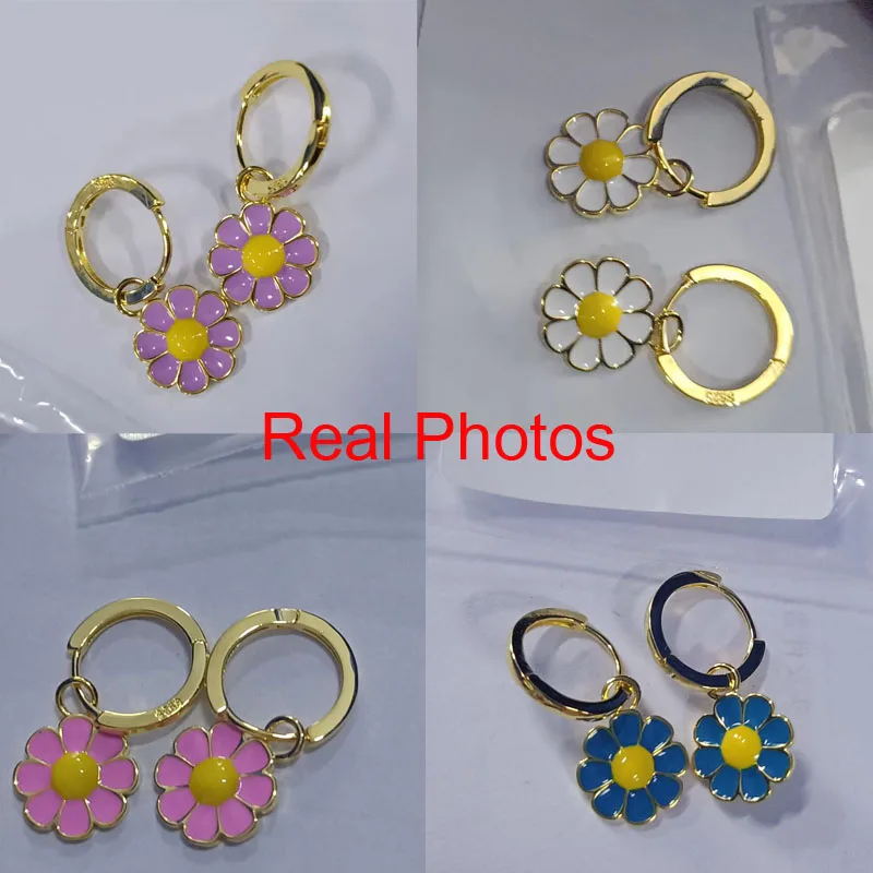 Aide серьги в виде колец, 925 Стерлинговое Серебро ромашка со в роз...