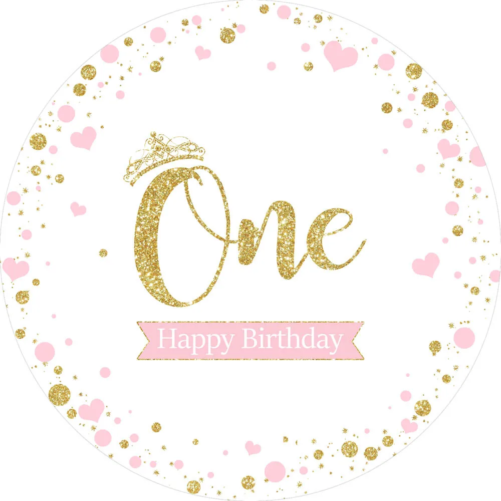 Фон для детского дня рождения с изображением милой принцессы на 1-й день рождения, торта, украшения для стола, золотистые точки, круглые фоны
