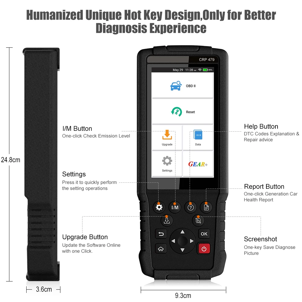 CRP479 поддерживает все OBD2/EOBD/JOBD + диагностику двигателя + 15 функций сброса, если вы хотите диагностировать полную систему, я предлагаю вам проверить Запуск CRP909 или Thinktool. CRP479 не поддерживает проверку Подушки Безопасности SRS, пожалуйста, внимательно проверьте наше описание. Для SRS, пожалуйста, проверьте CRP123i CRP129i CRP909C Thinktool mini