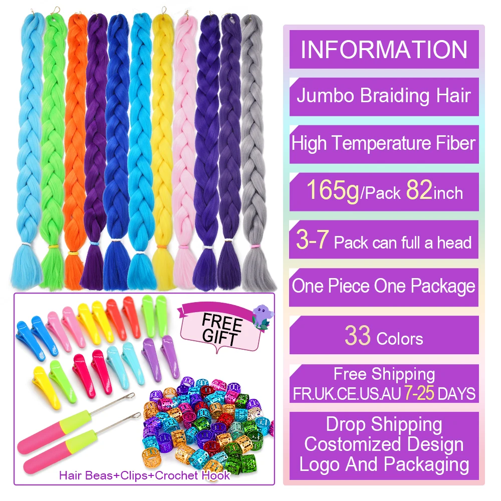 165 г, 82 дюйма, синтетические накладные волосы для косичек, предварительно растянутые высокотемпературные волосы для женщин, черного цвета