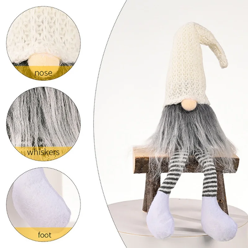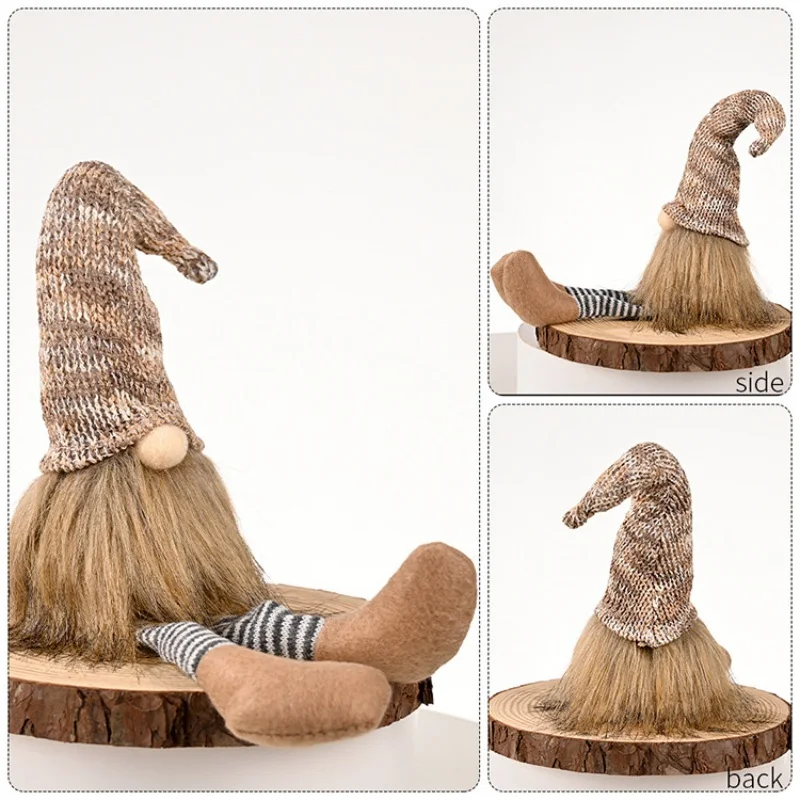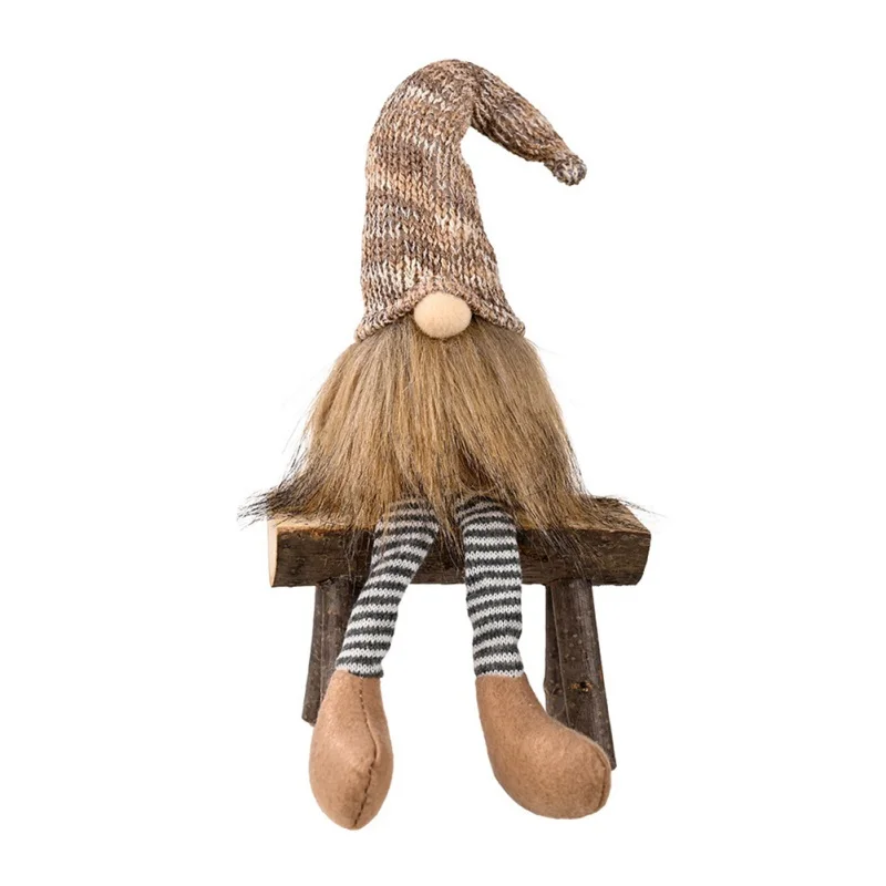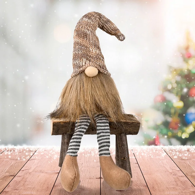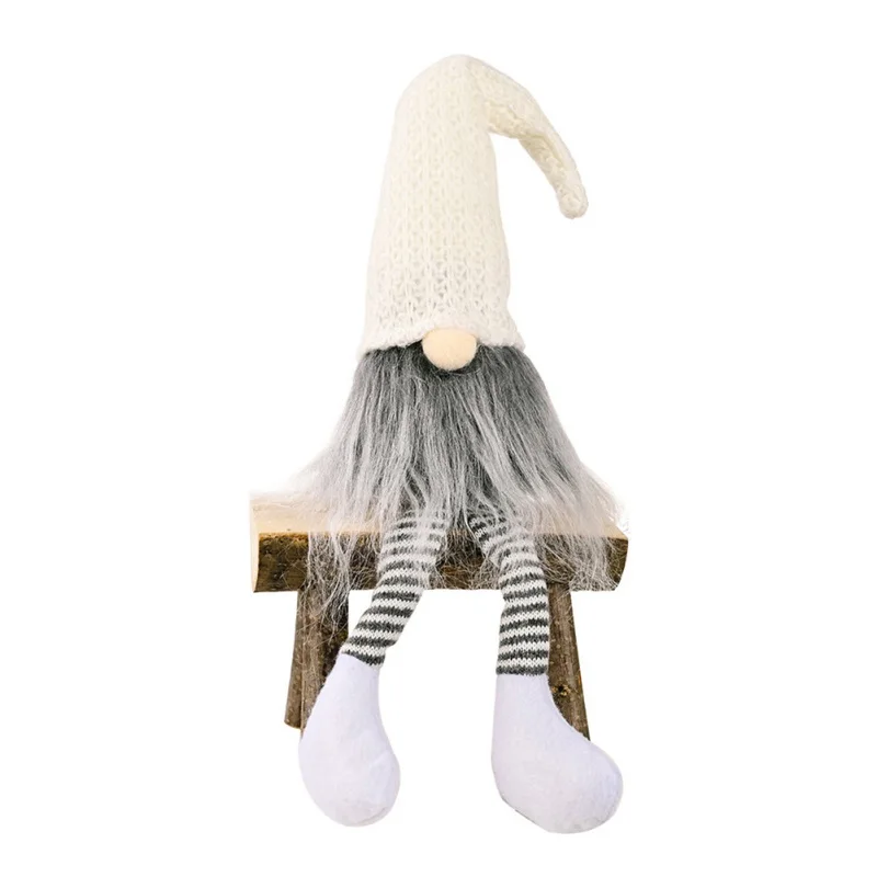 Рождественская Кукла-Гном, украшения с длинными ногами, плюшевые куклы для пожилых людей, Новогоднее украшение, вязаная кукла-ночник, сидящая кукла