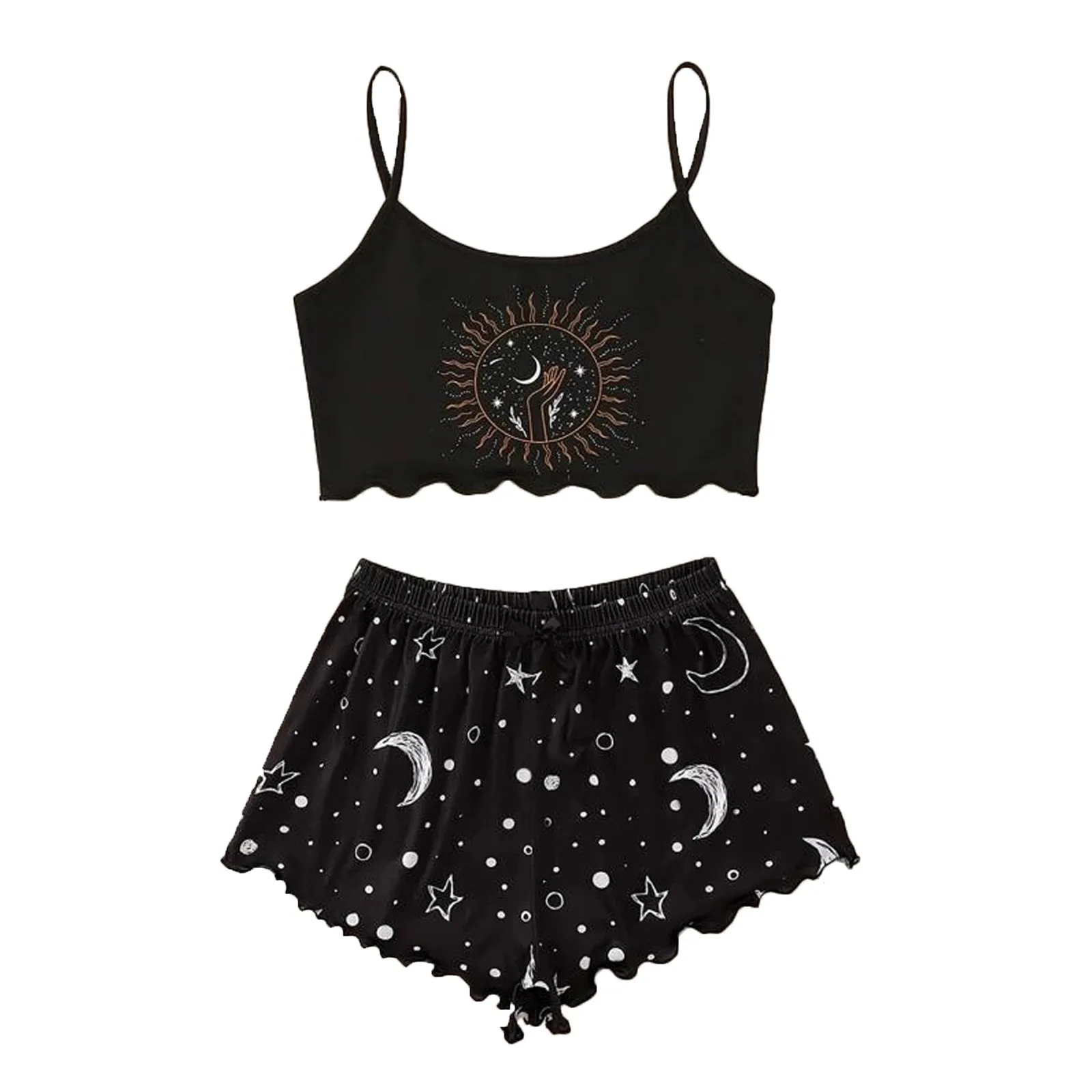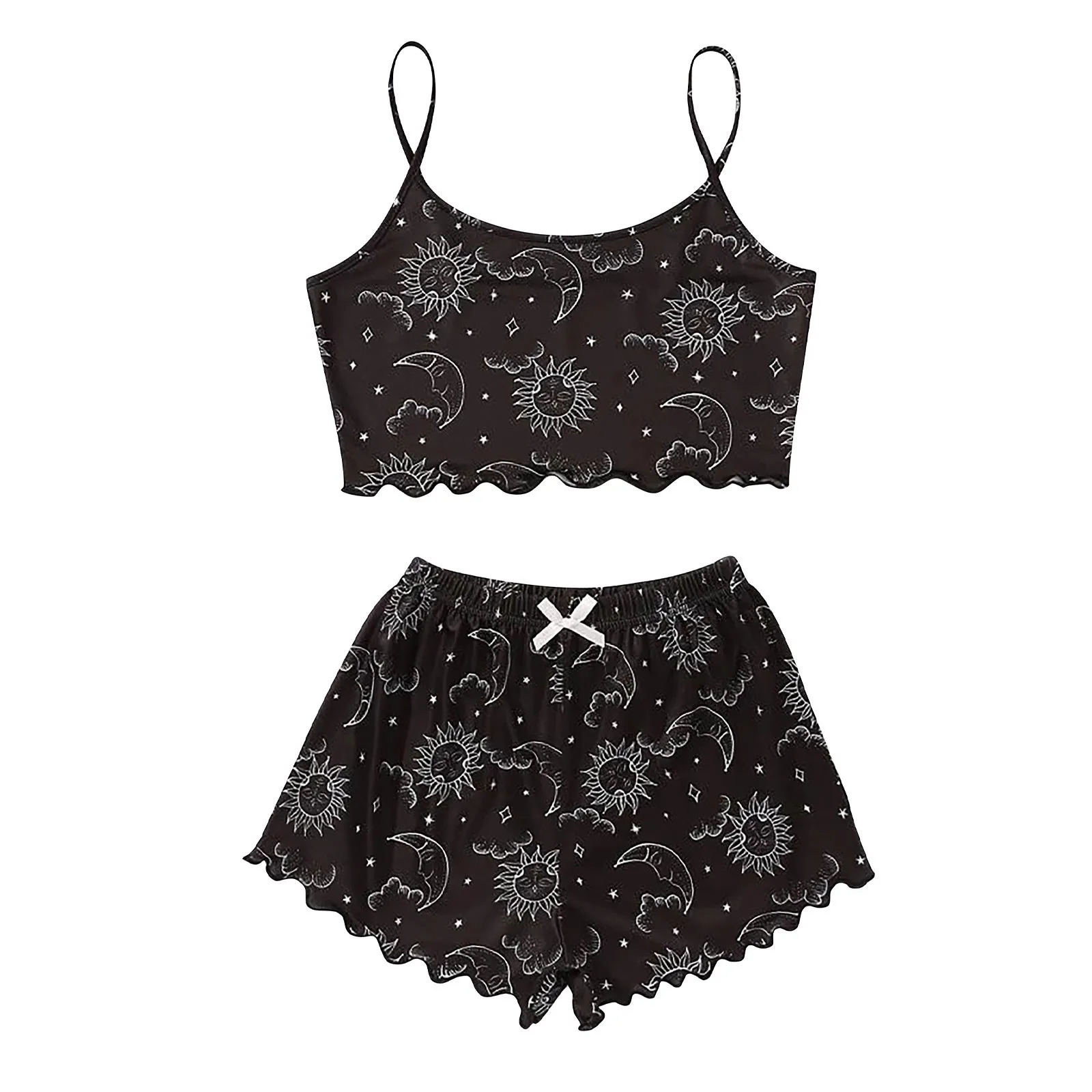 Женские пижамные комплекты с принтом звезд, одежда для отдыха, домашний комплект для сна, камзол, топ Сейлор Мун + штаны, летняя одеждаЖенская пижамаG4