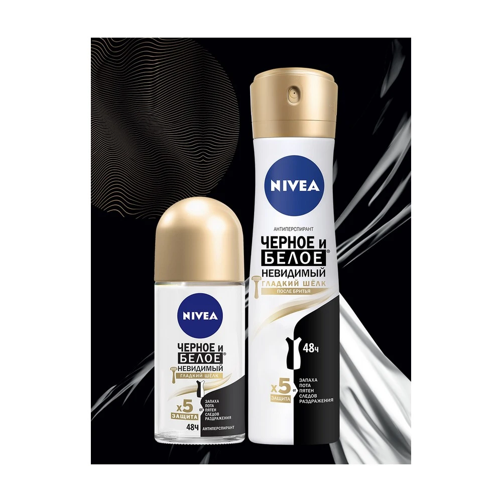 Женский дезодорант - антиперспирант Nivea Невидимая защита для черного и белого Гладкий шёлк 50мл