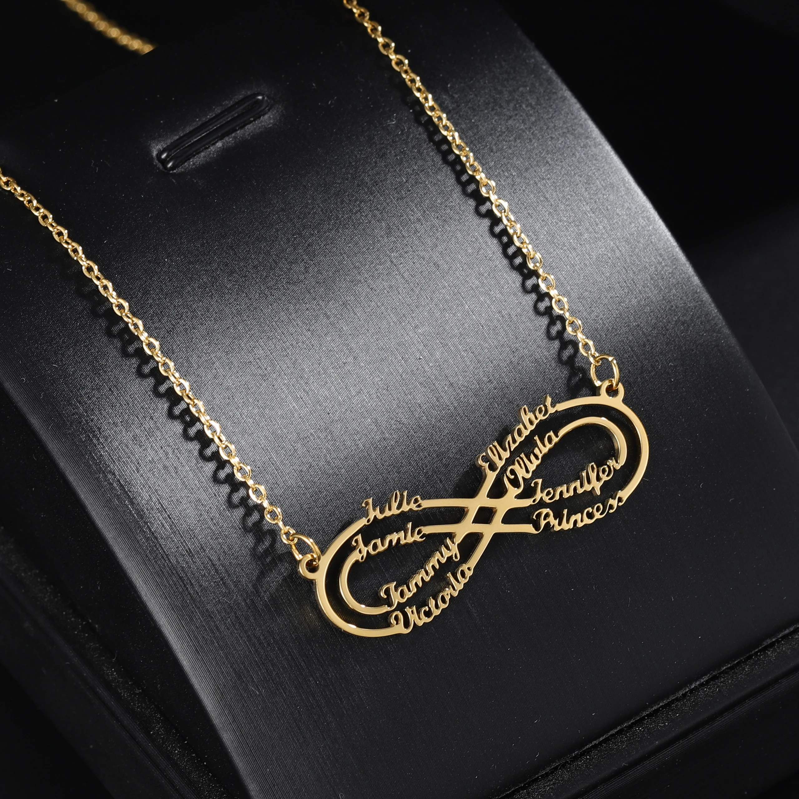 Изготовленный на заказ со знаком бесконечности имя золотое украшение на шею из нержавеющей стали, на возраст от 1 года до 8 лет имя ожерелье персонализированные женские ювелирные изделия, кулон для дружбы подарки