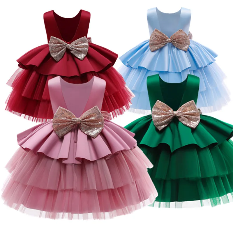 Платье принцессы для девочек, с цветочным рисунком, на свадьбу, для дня рождения, с открытой спиной