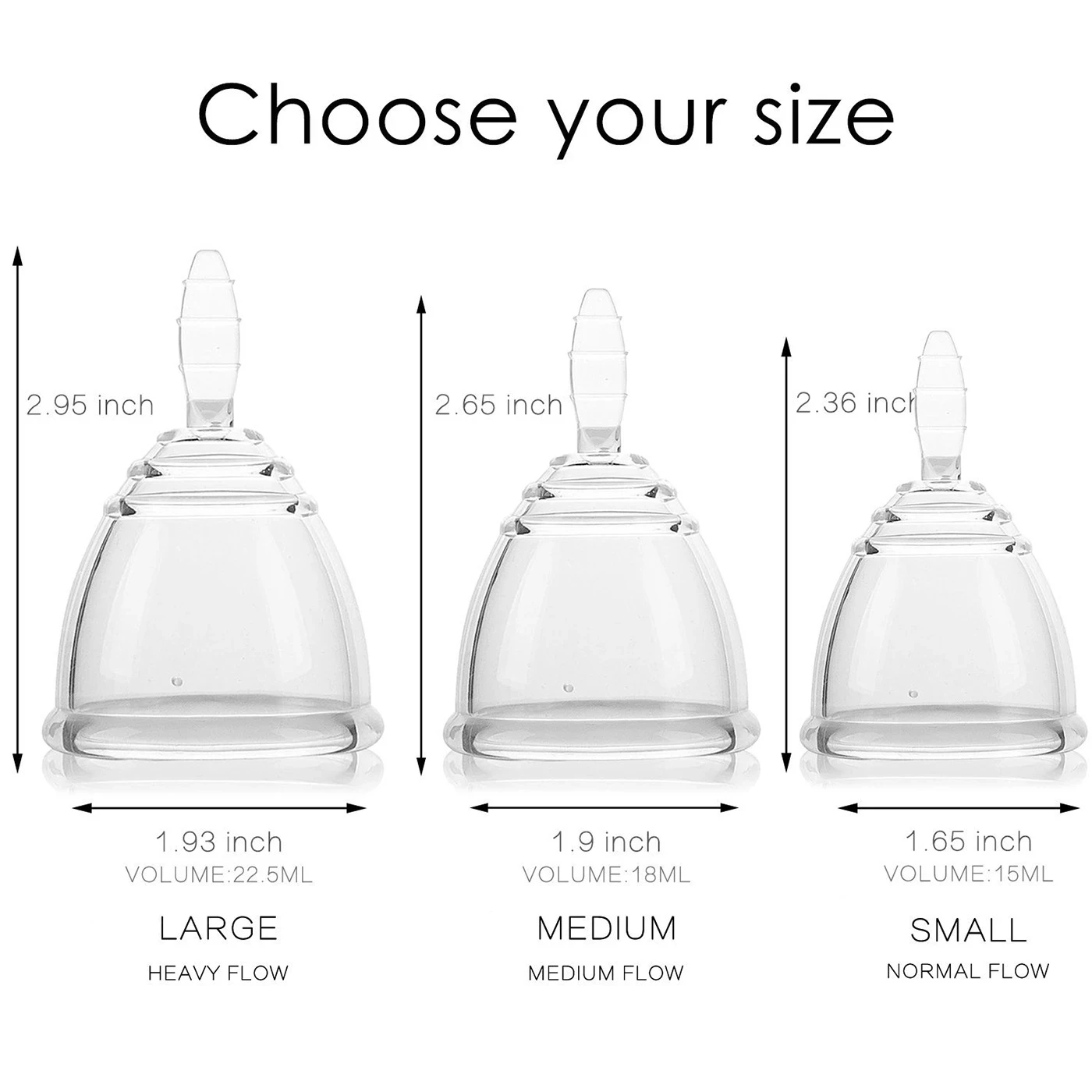 Как использовать?1. Перед обработкой менструальной чашки убедитесь, что ваши руки тщательно чистятся.2. Стерилизовать чашку перед первой вставкой.3. Рекомендуется вставлять чашку в любое из следующих позиций: сидя, приседая, опускаясь на колени или стоя, попробуйте одну из этих позиций и выберите наиболее подходящую для вас.4. Чтобы облегчить вставку, вы можете увлажнить чашку водой или смазочным гелем при необходимости.5. Захватите чашку пальцами и нажмите.6. Затем Сложите чашку пополам, используя пальцы другой руки.7. Удерживайте чашку пальцами одной руки в максимально низком положении.8. Аккуратно вставьте чашку во влагалище в сторону спины.9. Правильное положение чашки ниже, чем тампоны. После введения во влагалище отпустите пальцы и дайте чашке полностью разворачиваться и приклеиться к вагинальной стенке.10. Вы можете дезинфицировать до и после использования. Вопросы, требующие внимания:Никаких аллергических реакций не приводит к плесени и инфекциям мочевых путей, может применяться ко всем женщинам, но женщинам, у которых нет сексуального опыта, не рекомендуется использовать этот продукт. Описание емкости:Менструальная чашка размера S подходит для нормального протекания.Размер L менструальная чашка подходит для сильного потока.Мы рекомендуем вам купить два разных размера менструальных чашек для различных менструальных условий.