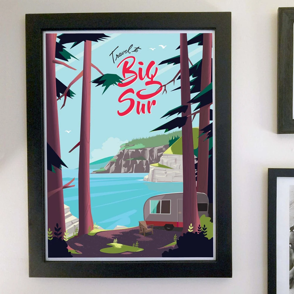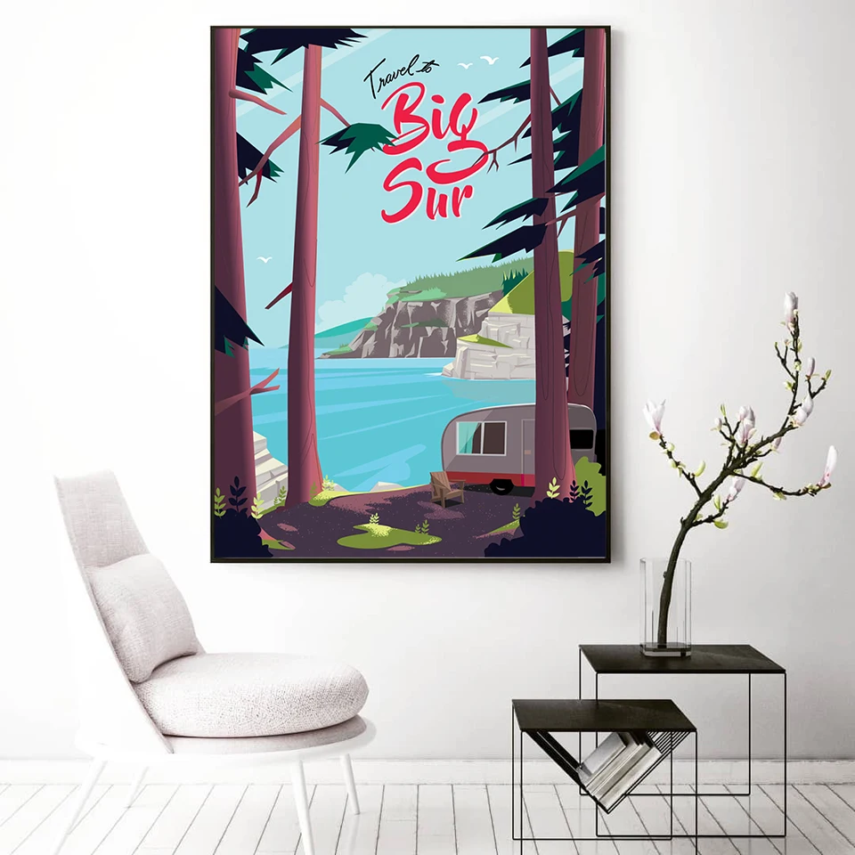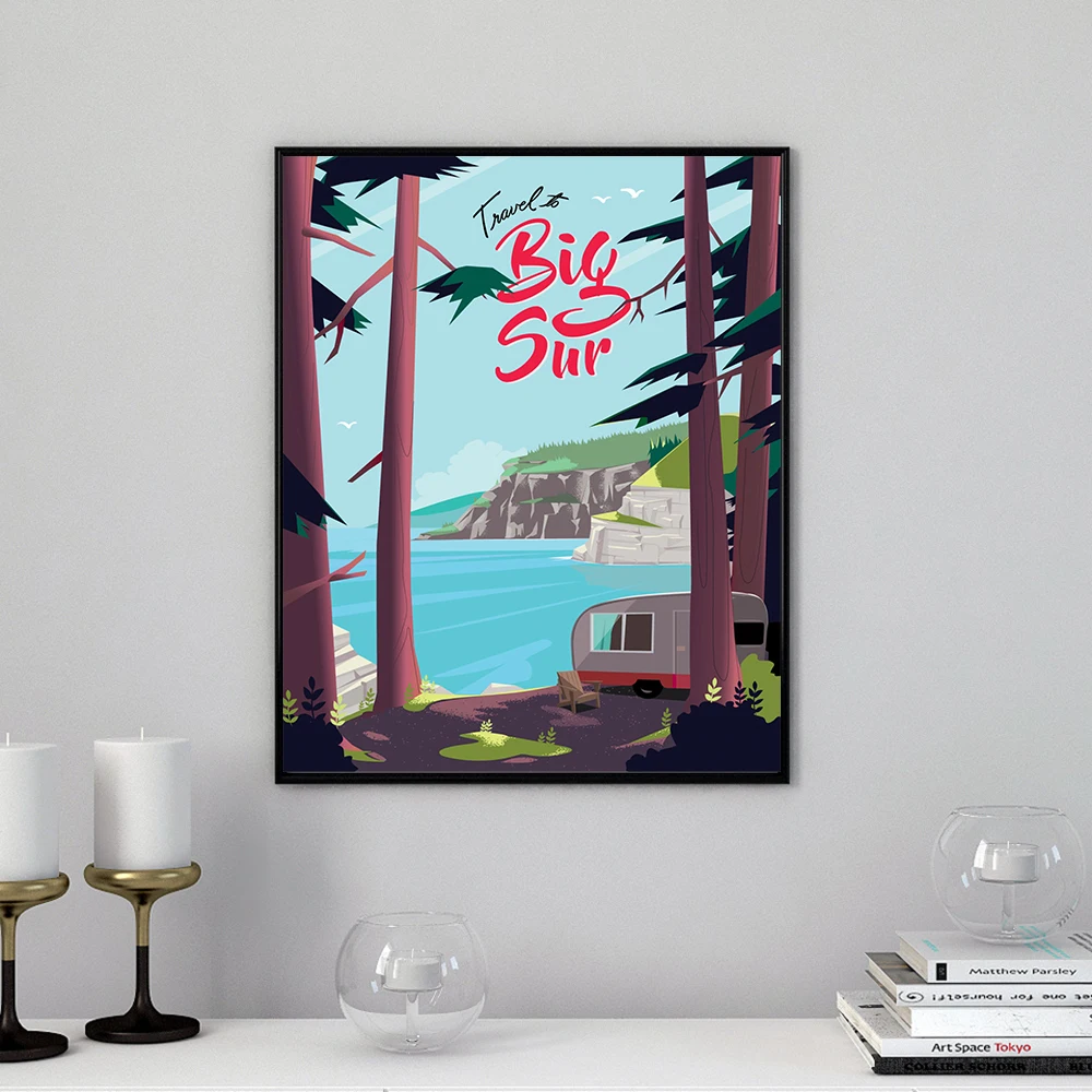 Калифорния Big Sur художественный постер Ретро Картина Путешествия городской пейзаж постер Настенная картина современный Декор для дома в скандинавском стиле