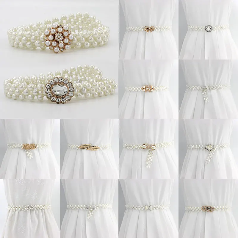 Украшение для платья пояс Эластичная Пряжка поясная цепочка с жемчугом Стразы Жемчуг пояс искусственный жемчуг