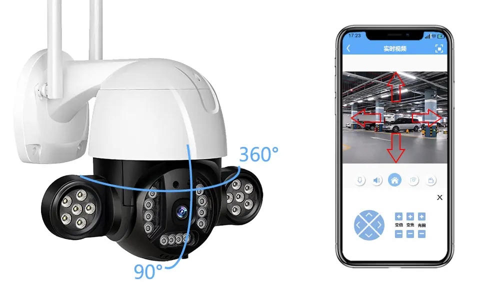 Вращается на 360 ° по горизонтали и на 90 ° по вертикали. Вы можете управлять им непосредственно в приложении, когда захотите и где бы вы ни находились.