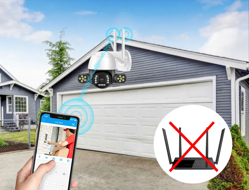 Что делать, если ваша камера отключится от сети? Не волнуйтесь, наша камера имеет встроенный AP wifi, вы все еще можете подключиться к AP wifi камеры, чтобы просмотреть его около 10 метров.